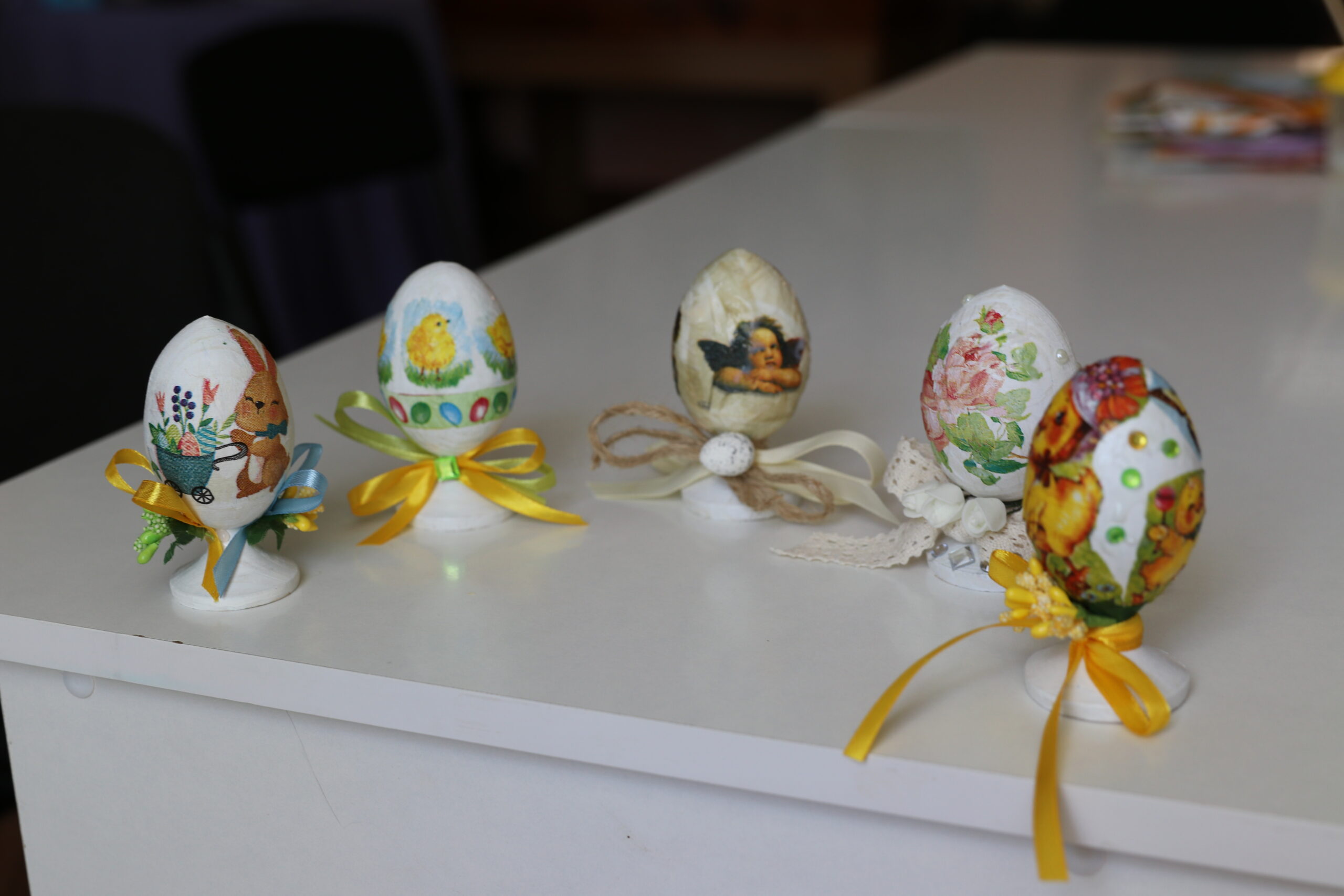 Декупаж – це техніка декорування різноманітних предметів шаром паперу, тканини або інших матеріалів, покритих клеєм. На заході учасникам було запропоновано не просто прикрасити крашанки, а створити справжні композиції, що виражали б їхню власну індивідуальність. Під керівництвом досвідчених майстрів присутні ознайомилися з основними техніками, а далі відтворювали власні ідеї та навіть декорували вироби різними стрічками та маленькими бусинками.