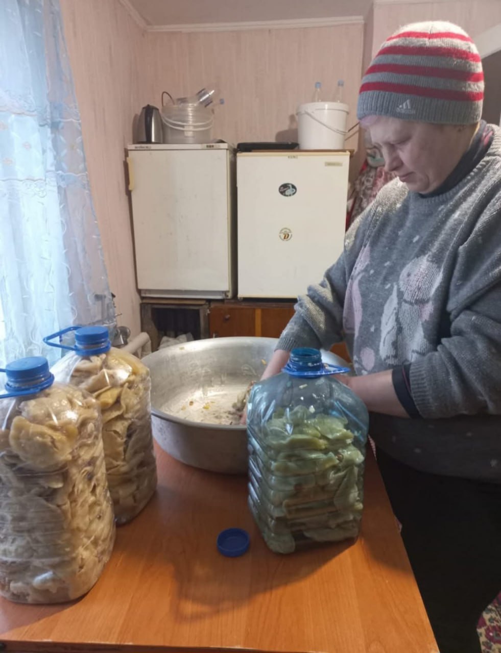 Багатьма продуктами харчування героїню нашої оповіді забезпечує керівниця волонтерського центру Інна Собран. Учора, наприклад, вона привезла капусту, яку та стушкувала для начинки пиріжків. А ще – олію, оцет, цукор.