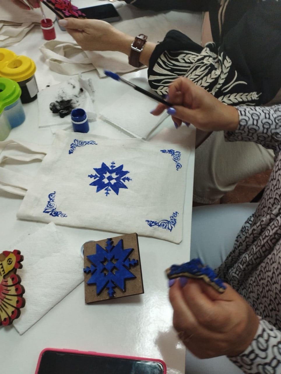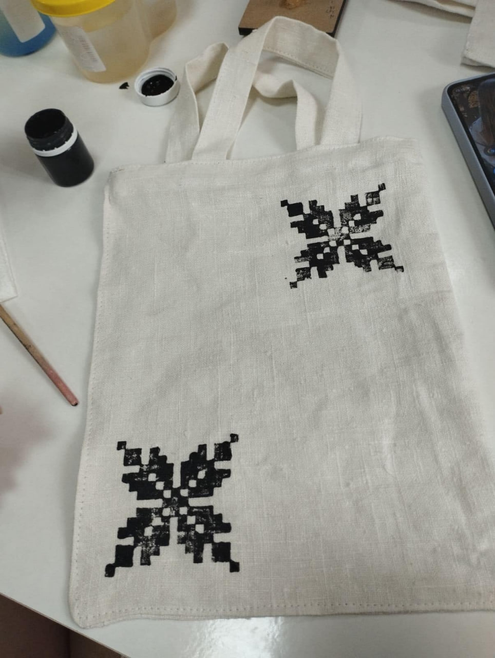 Та справжнє захоплення розпочалося тоді, коли відвідувачки взяли до рук інструменти й долучилися до майстер-класу. У ці миті мистецтво не лише з’єднувало їх, але й дарувало безліч позитивних емоцій. Відчуваючи радість від творчої співпраці, кожна жінка прикрашала свій виріб вибійками, вкладаючи в нього частинку власної душі. Екосумки вийшли чудовими й неповторними. Від кожного штампу на тканині віяло унікальністю й енергетикою тих, хто їх створював. Усі жінки залишили зустріч з відчуттям єдності, адже творчість має чарівну силу гуртування.
