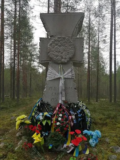 Українці, як символ духовної незламності, установили дерев’яний козацький хрест. Щороку в дні пам’яті сюди приїздять представники України, Карелії, Польщі, Фінляндії. У тиші лісу звучить: «Боже великий, єдиний, нам Україну храни…». І вірші тих, кого вбили за слово.