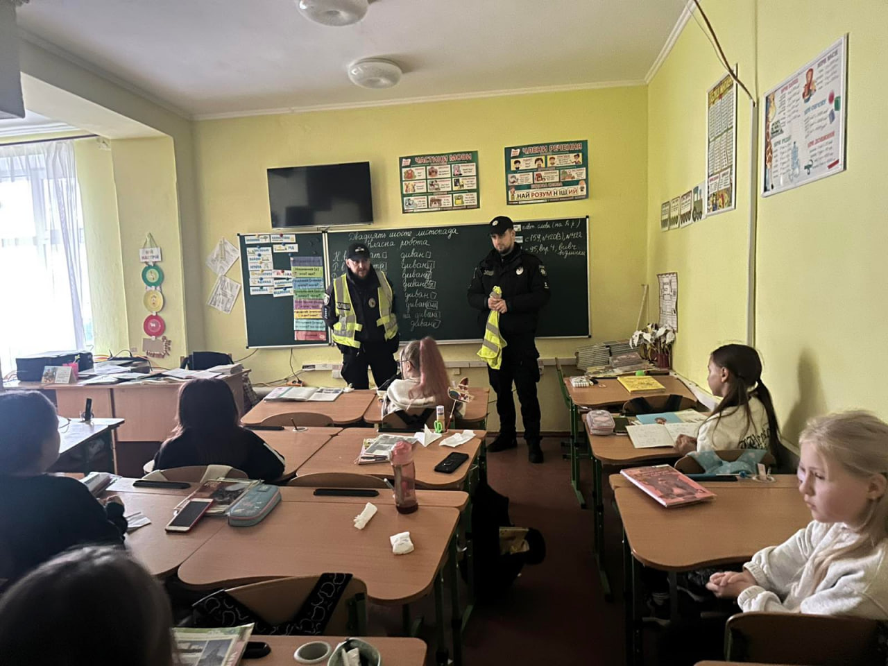 Учням продемонстрували, як змінюється видимість пішохода, якщо на одязі є навіть невеликий світловідбивач. Під час практичного показу діти переконалися: завдяки таким елементам водій може побачити людину вже за 150 метрів і більше. Поліцейські наголосили, що саме цей простий аксесуар нерідко стає вирішальним у запобіганні ДТП.