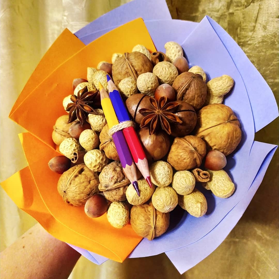 Наталія розповідає, що виготовляти букети із їстівних інгредієнтів, її надихнула донечка.