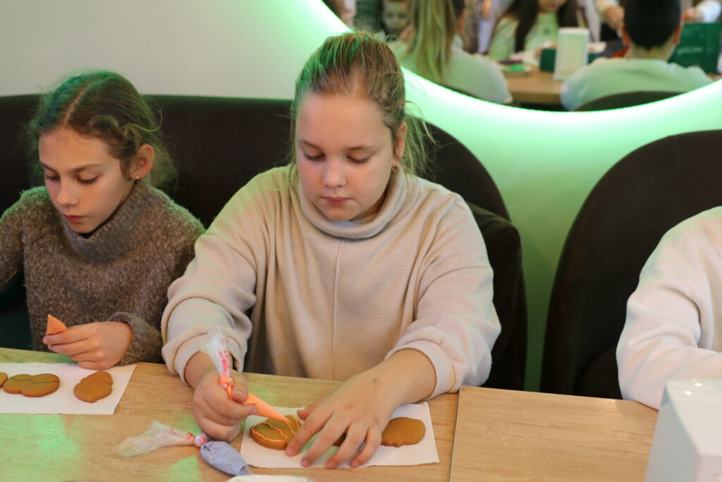 На майстер-класі діти мали можливість розмалювати імбирні пряники в образах веселих гелловінських героїв: гарбуза, привида та очей. Усі учасники отримали необхідні інструменти, барвники, а Валентина Крикливенко детально розповідала про кожен етап розпису, допомагаючи дітям освоїти техніки створення яскравих і оригінальних візерунків. Діти із захопленням бралися за роботу, і вже за деякий час їхні пряники перетворилися на справжні мистецькі витвори.