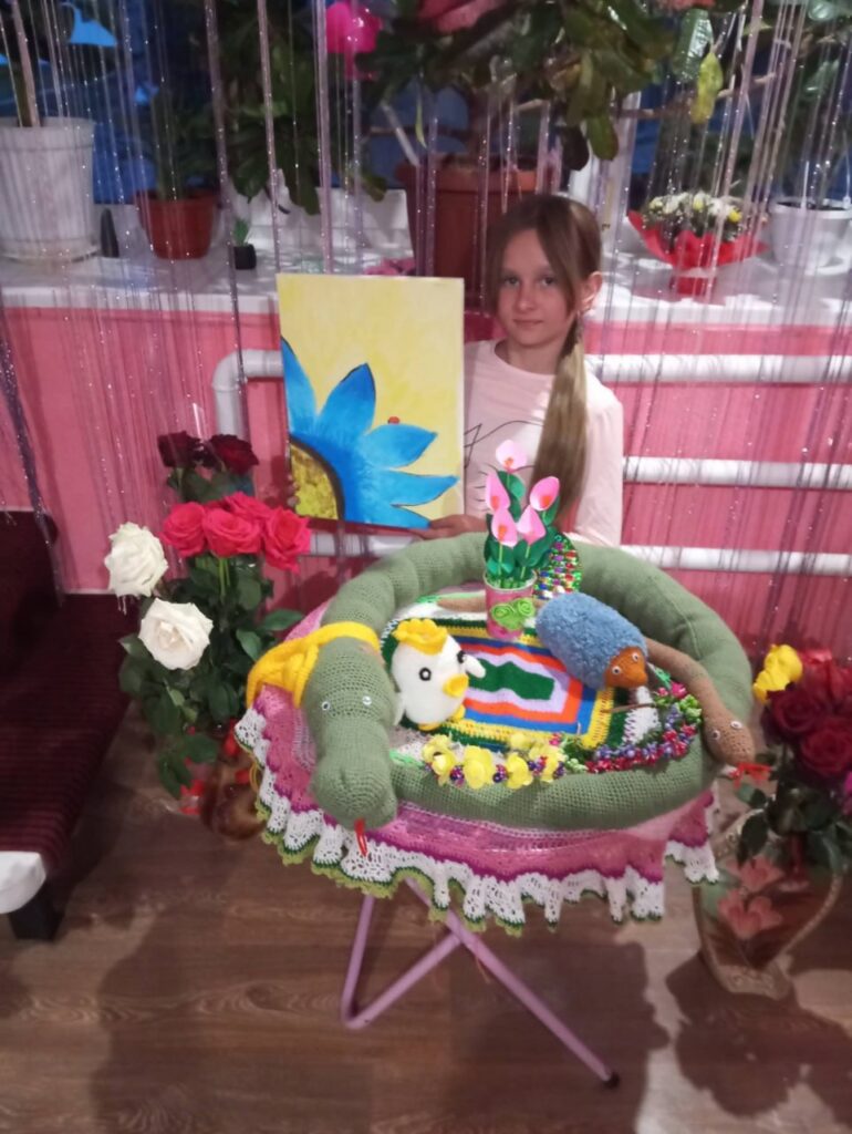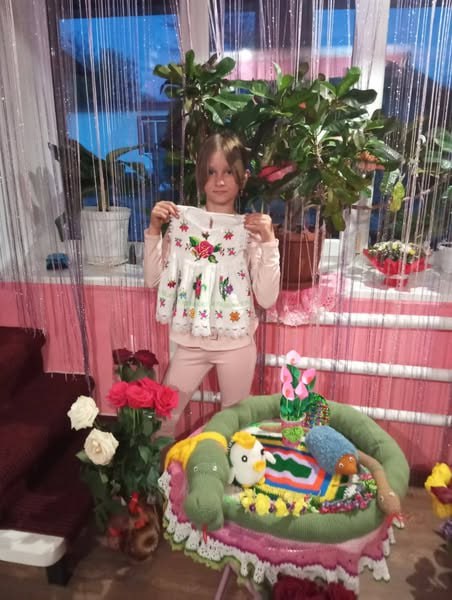 Мама Олена Миколаївна та донька, п’ятикласниця Аніта Порожня, представили вишиті платтячка, м’які іграшки, в’язані серветки, мереживні скатертини, яскраві дитячі малюнки. Усе це зроблено з любов’ю, підтримкою одне одного й спільним бажанням творити.