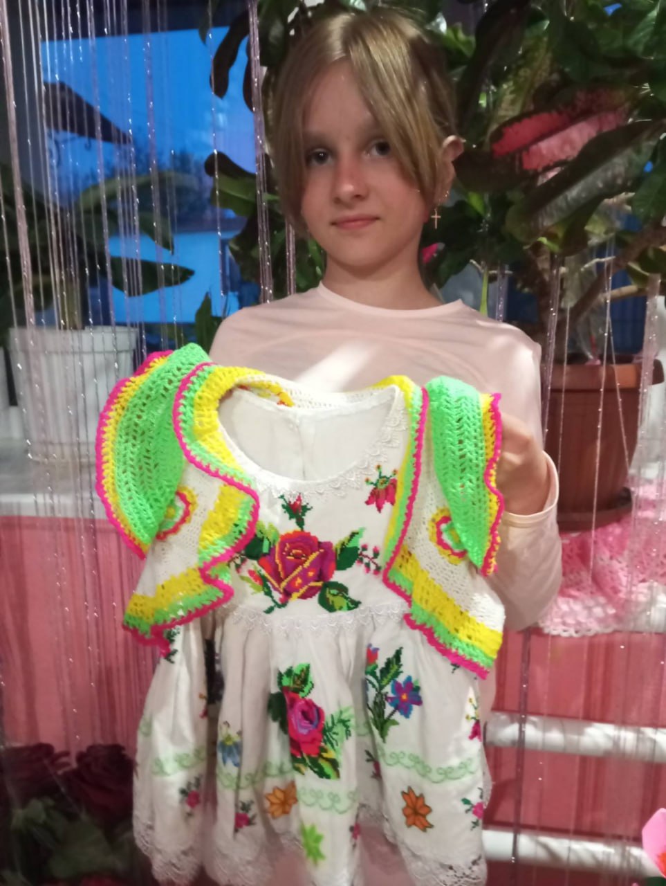 «У нас було вишите платтячко. Шила його спеціально для доньки. А ще до нього була накидочка, шапочка – усе зв’язане гачком. Це платтячко — пам’ять. У ньому вона на хрещенні в рік була. Усе зробила сама для своєї дитини. Бо як інакше?» – ділиться Олена Миколаївна.
