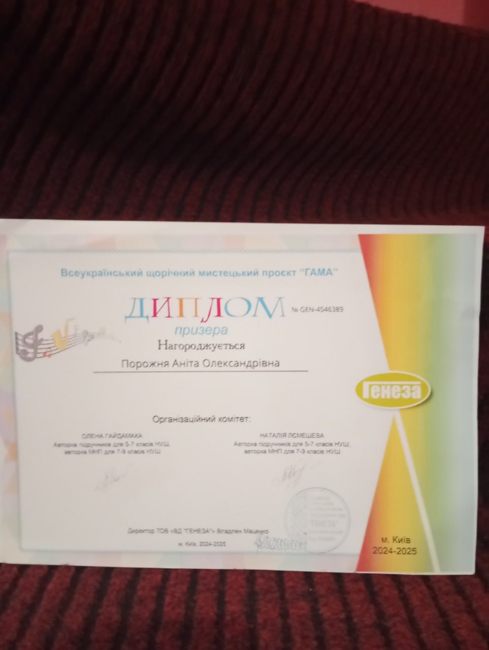 Аніта – щира дівчинка. Не любить сидіти на місці, хоче все й одразу. Та саме в цій невгамовній енергії — її талант. Малюнки – «Жабка з чашкою», «Сонце й небо», а особливо «Неземна, вільна Україна» – то справжні дитяча задушевність і патріотизм.
