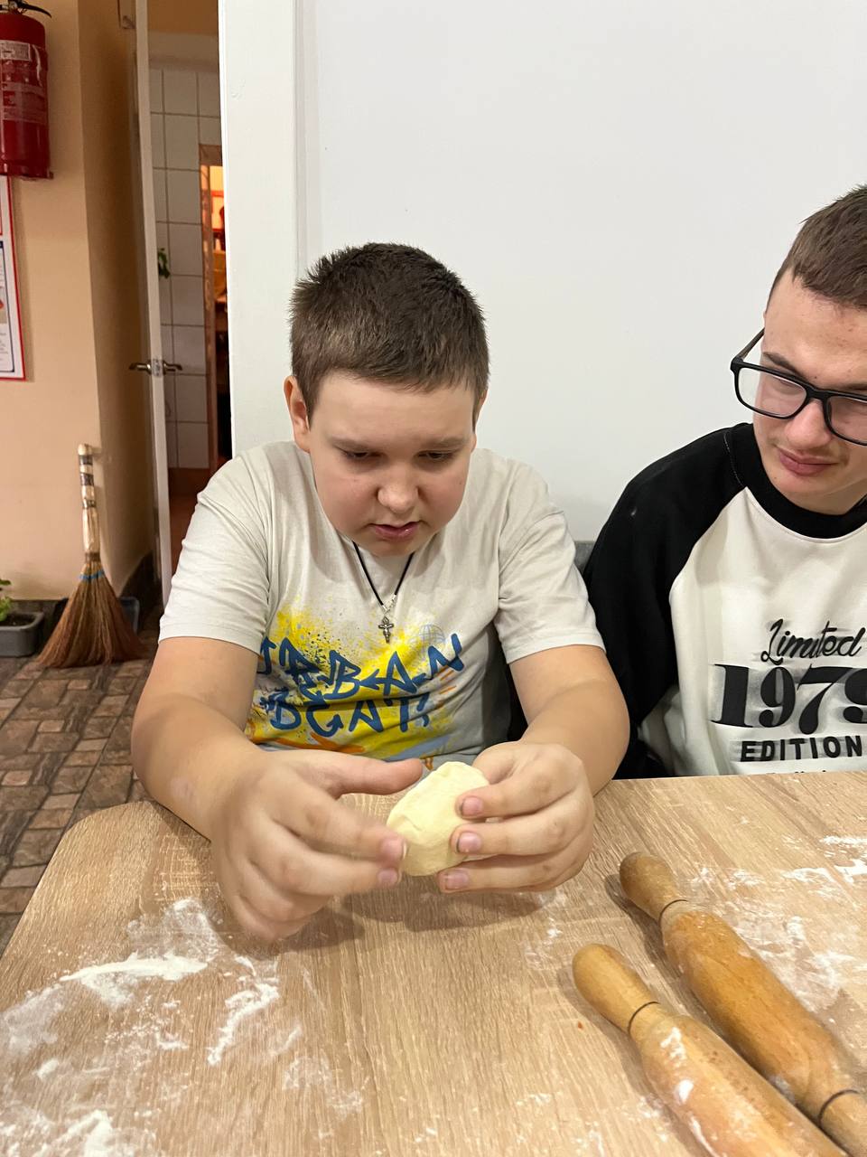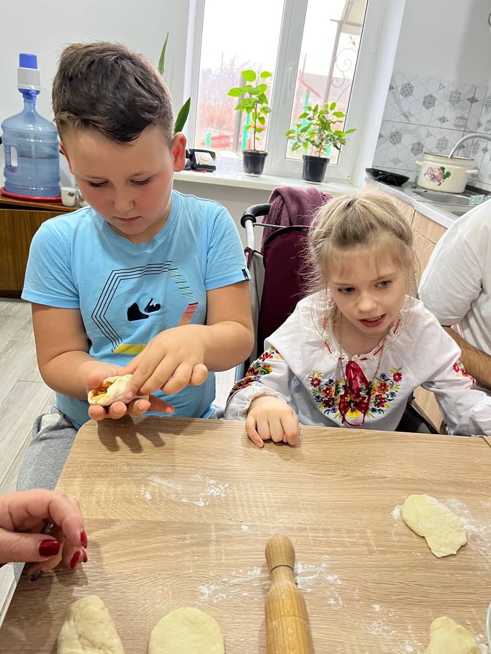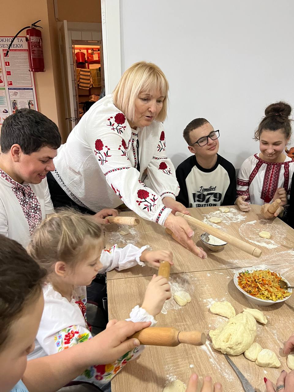 Свято розпочали з кулінарного заняття, яке традиційно стало об’єднуючою частиною зустрічі. Людмила Павлова замісила тісто для пиріжків, а далі до роботи долучилися діти: ліпили рум’яні пиріжечки, начиняли їх капустою та акуратно викладали на деко. У приміщенні швидко поширився аромат домашньої випічки, що додав заходу тепла й родинності.