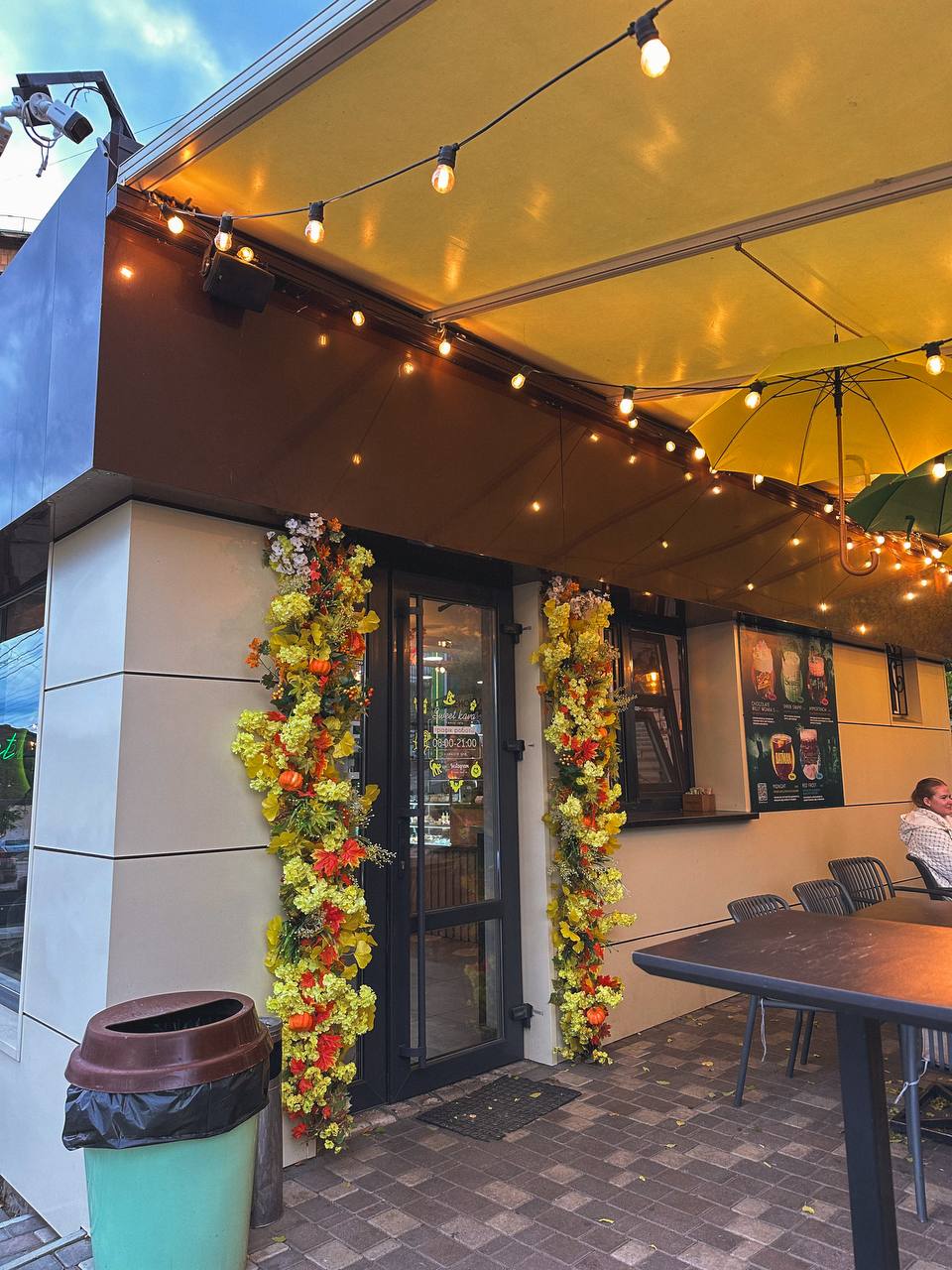 Серед закладів харчування «Сімейна кав’ярня», прикрашена гірляндами з листя та квітами у горщиках. Осінню теплоту дарує й кафе «Sweet kava»: просто надворі облаштовано фотозону зі снопом сіна, полицею з чоботами, дощовиком, гарбузами та квітами, а всередині – осіннє листя й декоративні гарбузики.