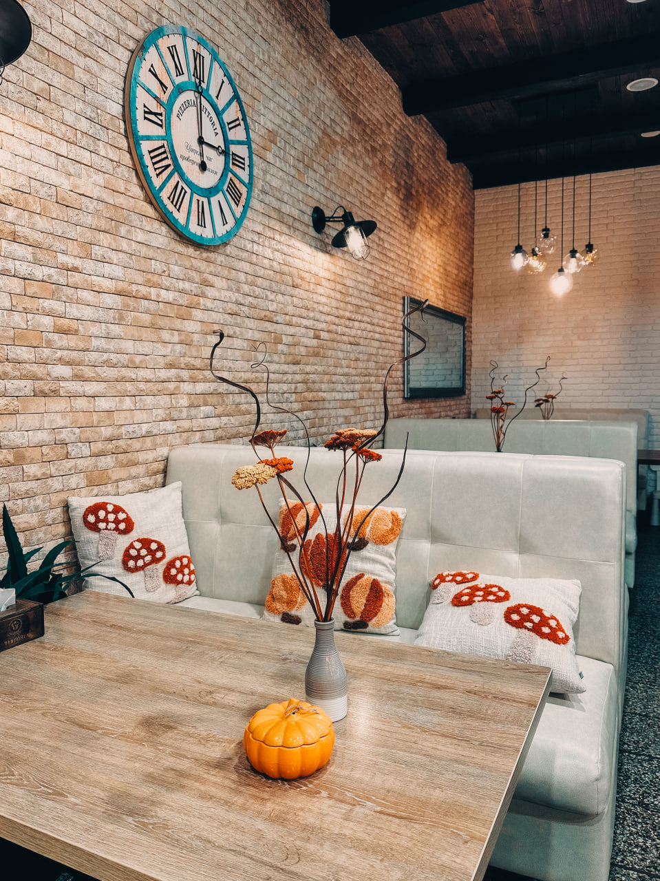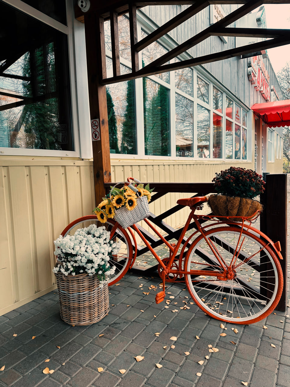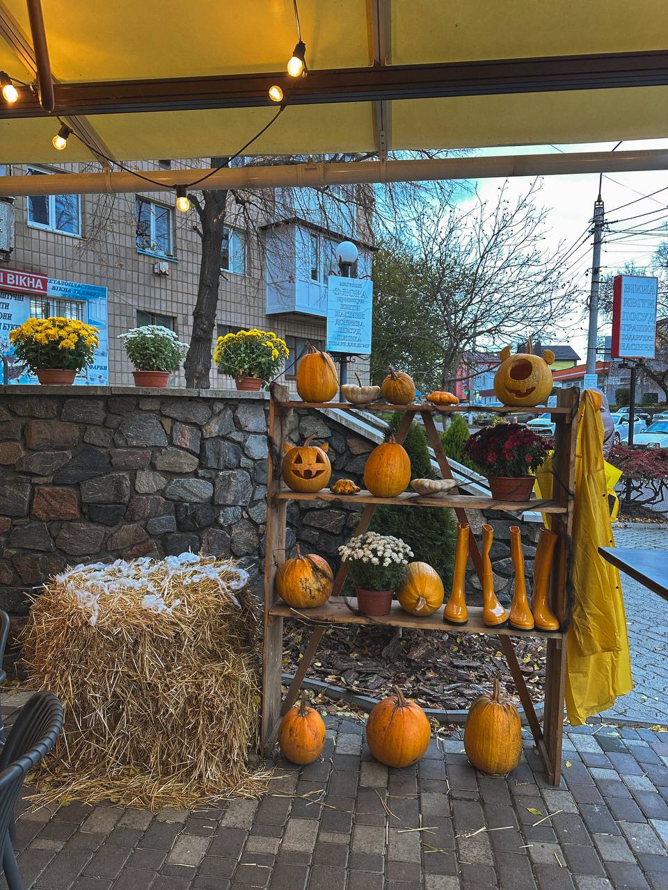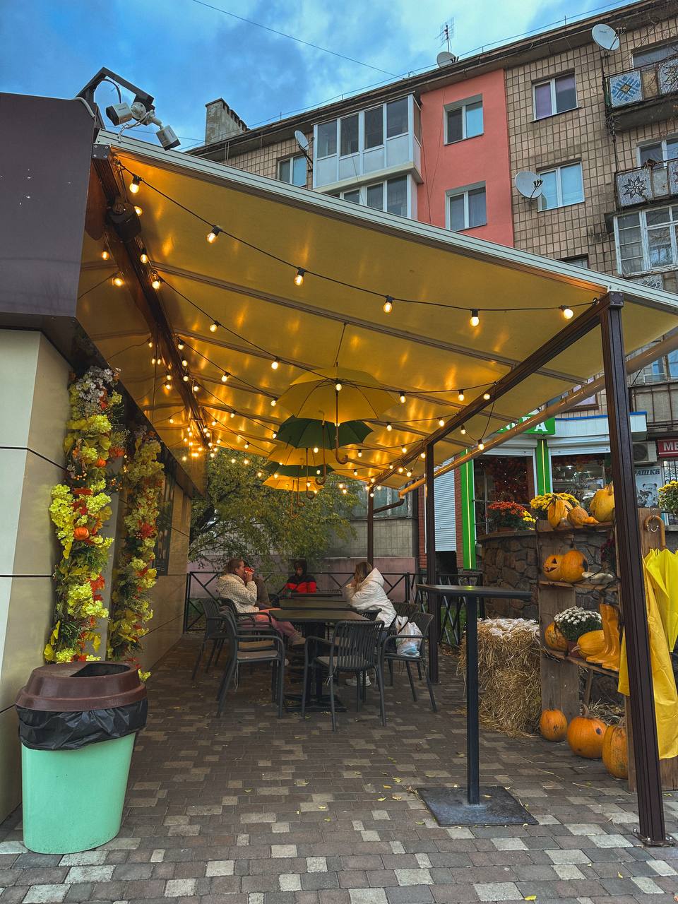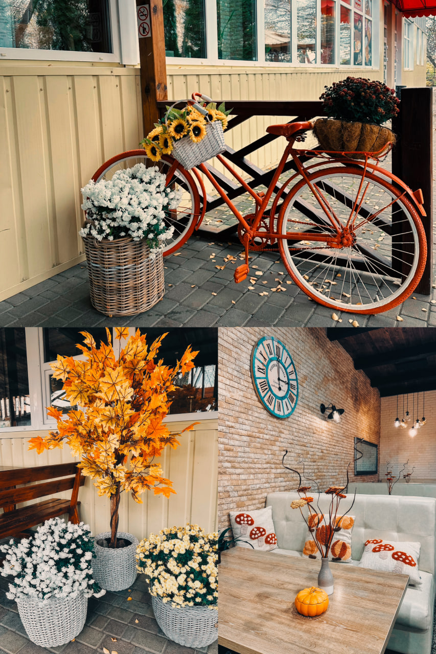Ще однією прикрасою осіннього міста стала піцерія «Vittoria». Біля її входу встановлено декоративний велосипед, оздоблений квітами, а довкола розташовано вазони й горщики з осінніми рослинами. Усе це створює відчуття затишку та гостинності.