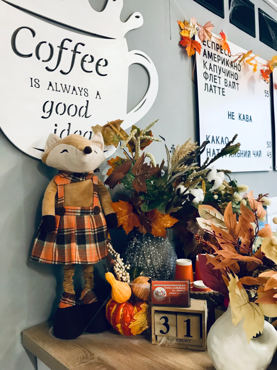 Не залишилися осторонь і заклади, де щодня бувають діти. Академія «Хакер» оформила приміщення тематичними осінніми декораціями, створивши яскравий простір для навчання й відпочинку. А в дитячому центрі «Foxyland» осінь зустрічає відвідувачів із порога – тут і барвисті гірлянди, і затишна фотозона з кульками та листям. Атмосфера тепла й радості надихає малечу на творчість і додає настрою батькам.