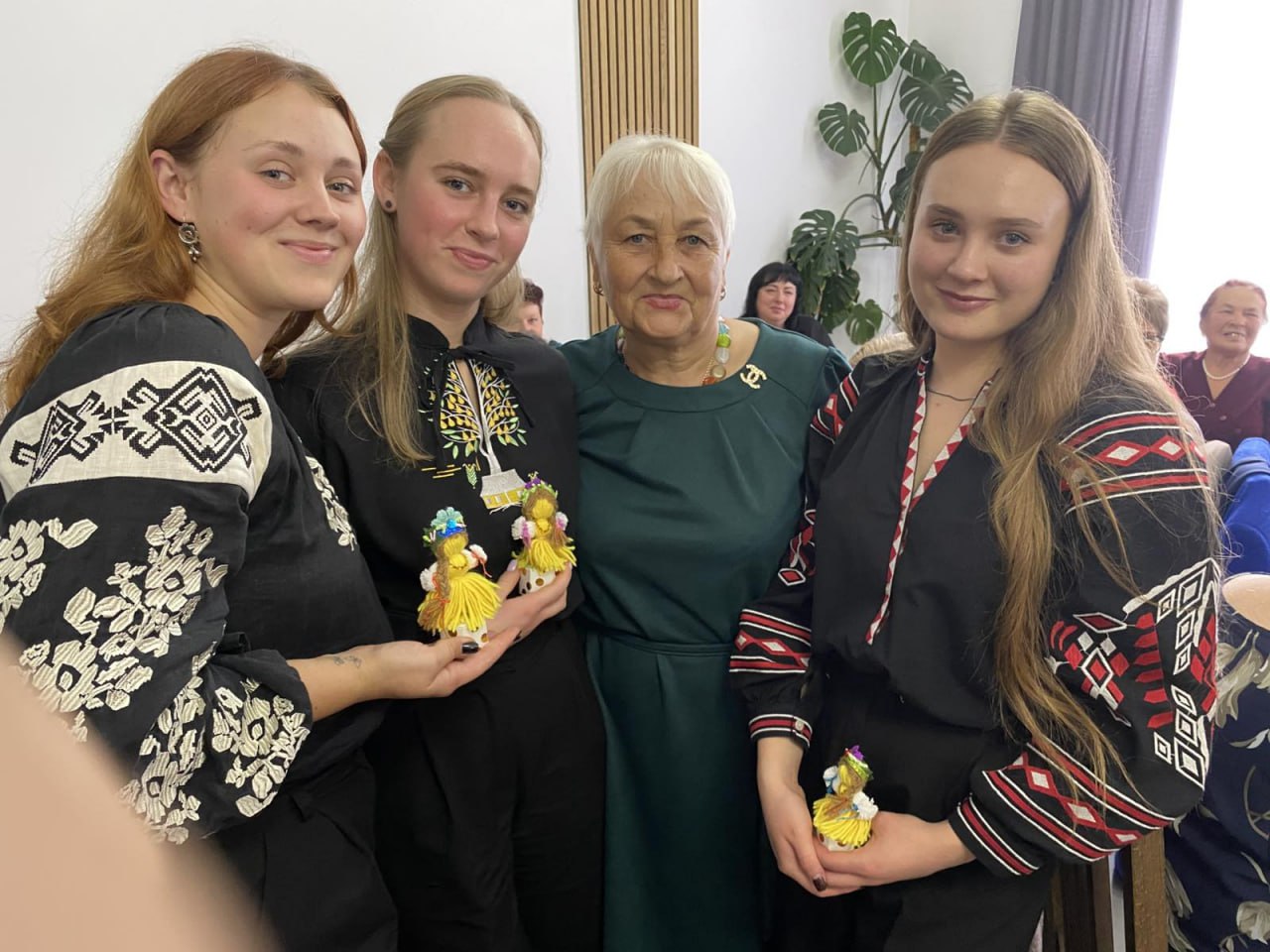 Справжньою окрасою зустрічі став виступ чарівного ансамблю «Жоржини» із Звенигородщини. Майстриня Тамара Гаюн подарувала дівчатам власноруч виготовлені лялечки-мотанки – як оберіг і подяку.