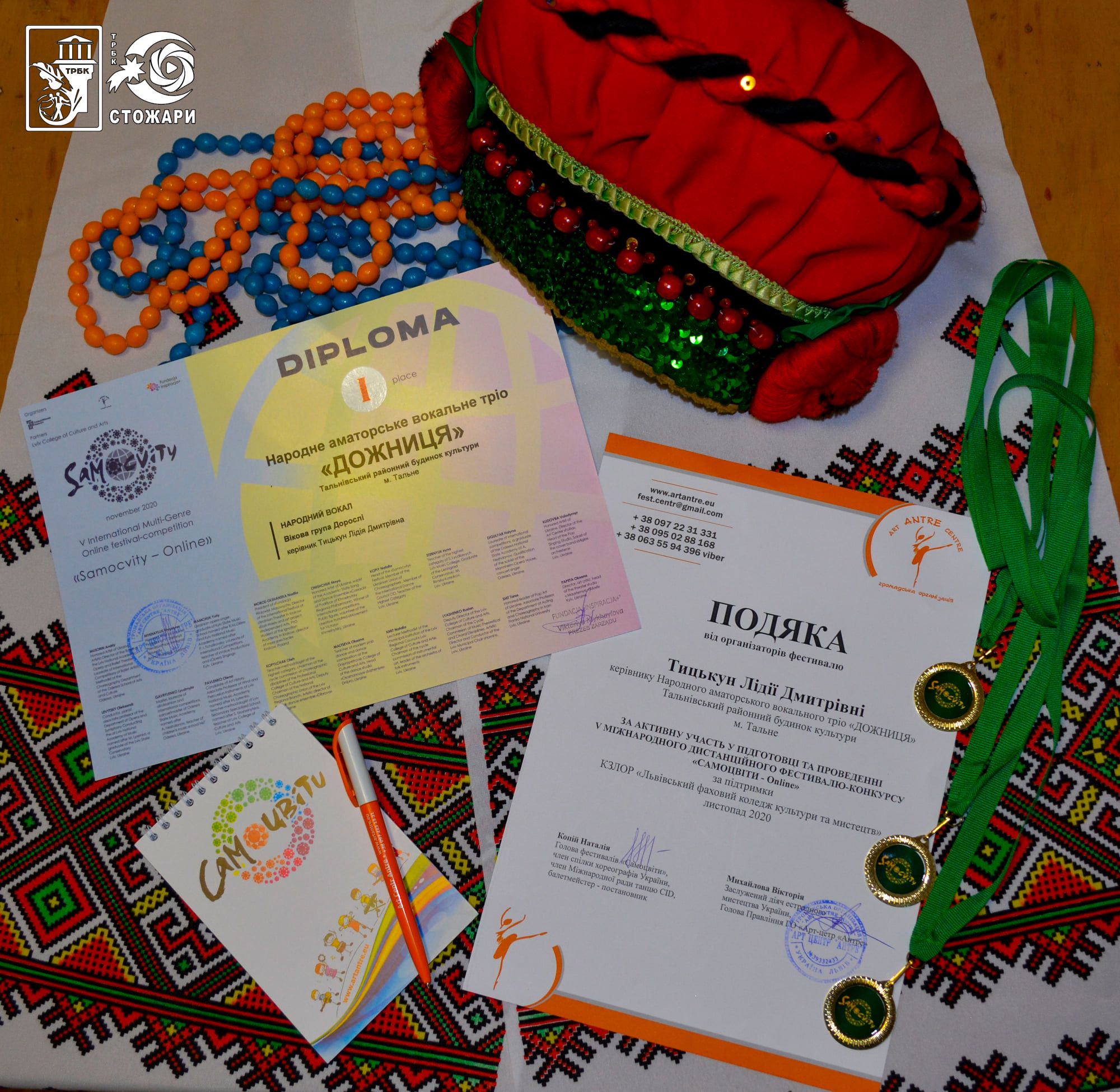 У листопаді минулого року народне тріо «Дожниця» Тальнівського будинку культури здобуло чергову перемогу: І місце в престижному Міжнародному фестивалі «Самоцвіти», що проходив, як практично всі конкурси 2020, онлайн. На прискіпливе оцінювання почесного журі з 18 країн світу колектив подав дві пісні:дуже давню народну «Бариня», що виконується акапельно та візитівку колективу – композицію «Трипілля» місцевих авторів ( на слова Андрія Поліщука та музику Людмили Шуляк).