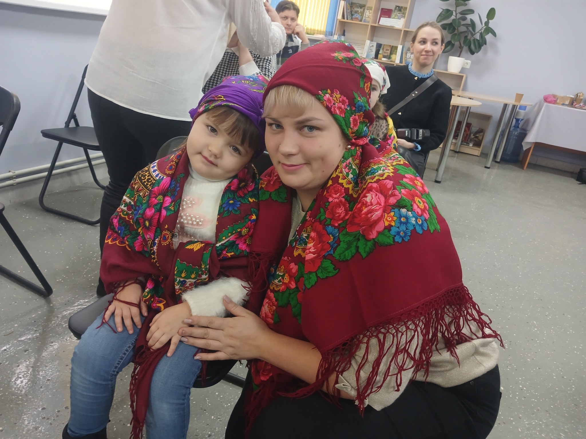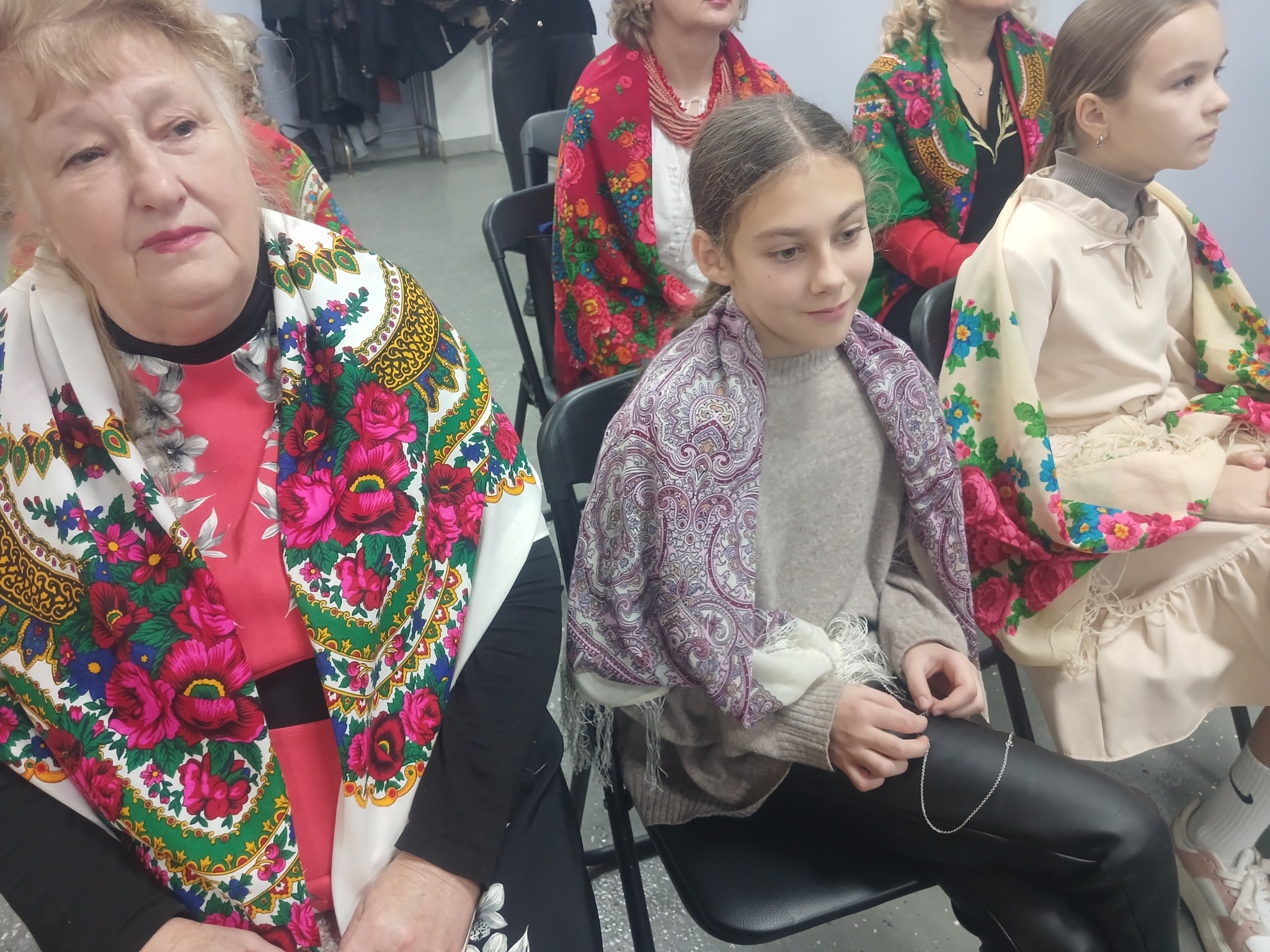 Учасниці вчилися пов’язувати хустки у повсякденному, святковому та творчому стилях. Старші жінки допомагали молодшим, а всі уважно спостерігали за вправною роботою майстрині Ірини Михайлівни. Атмосфера була по-справжньому домашня, тепла й щира.