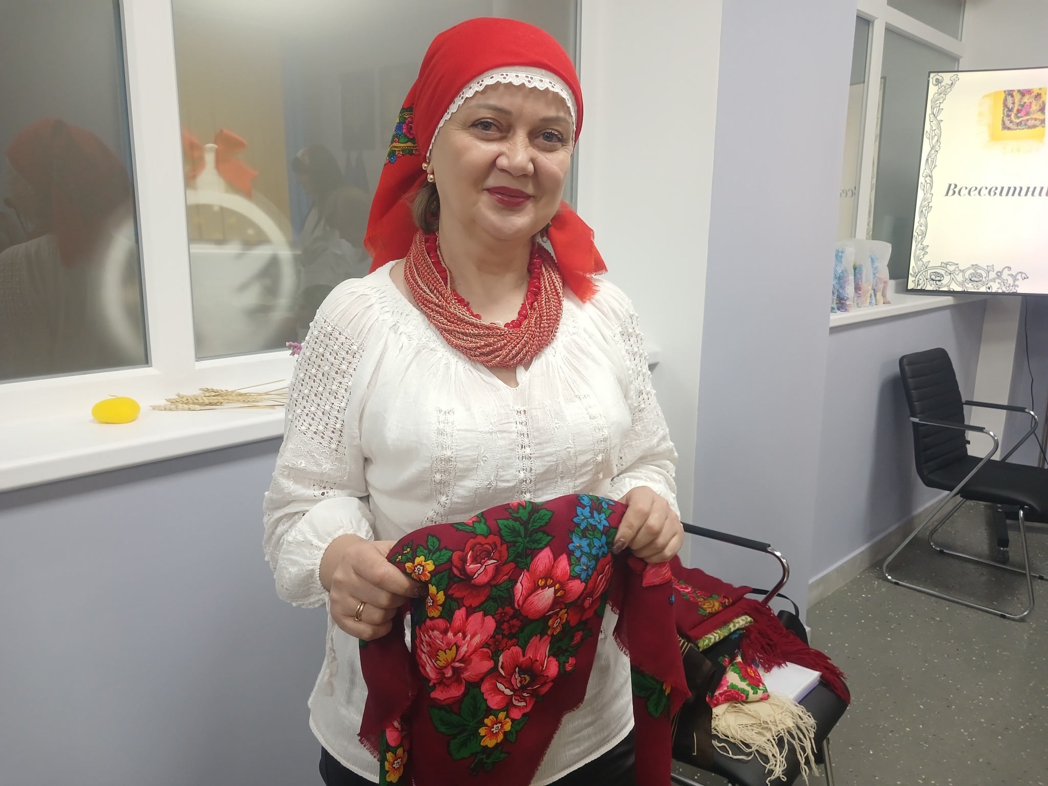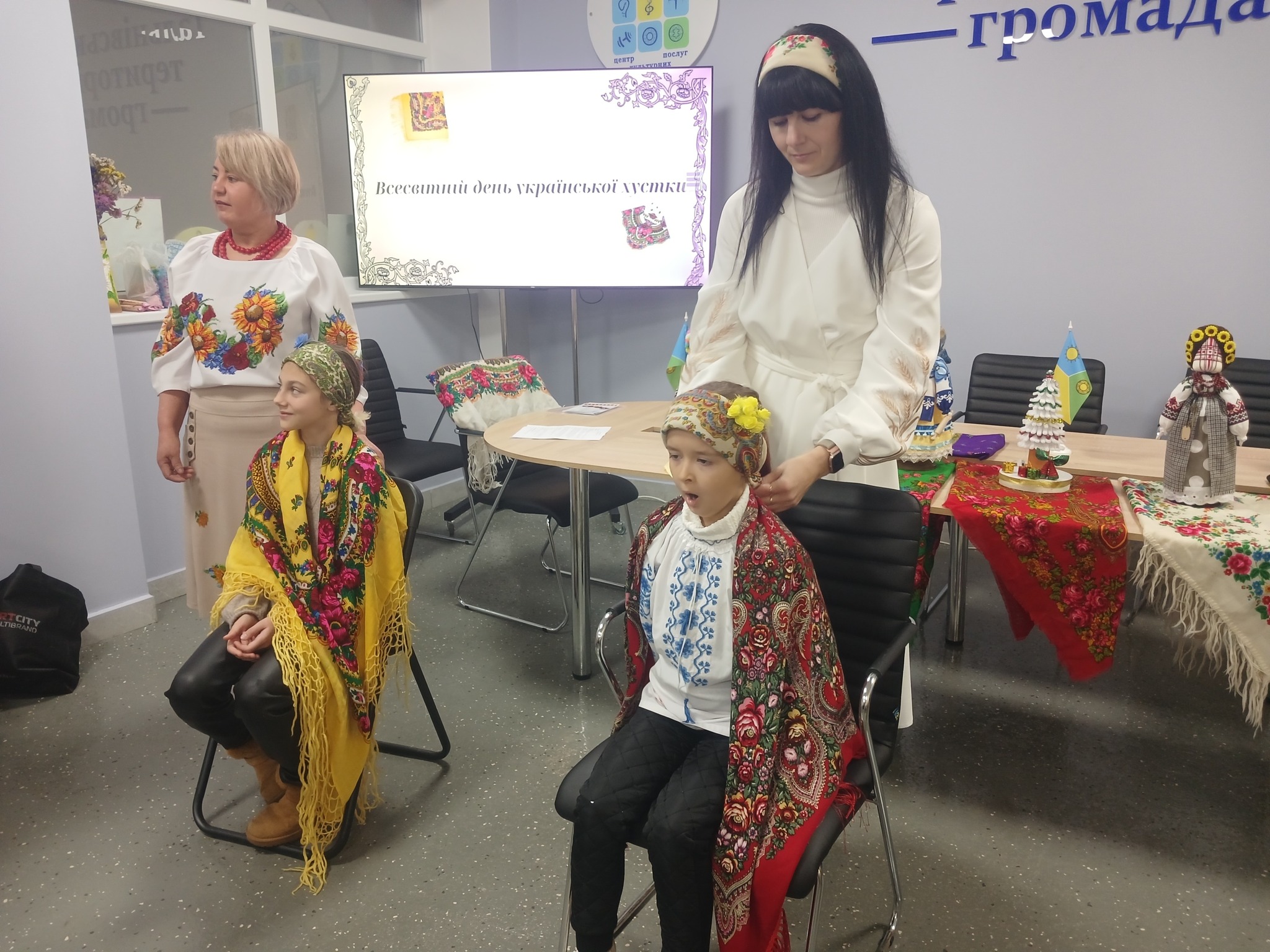У конференцзалі Центру культурних послуг ТМР відбувся теплий і натхненний майстер-клас із зав’язування хустки. Для участі в заході була запрошена Ірина Михайлівна Степанець – педагог-організатор, шкільний бібліотекар Веселокутської гімназії ТМР, виховниця куреня імені Віктора Мельниченка, осередку всеукраїнської військово-патріотичної гри «Сокіл».