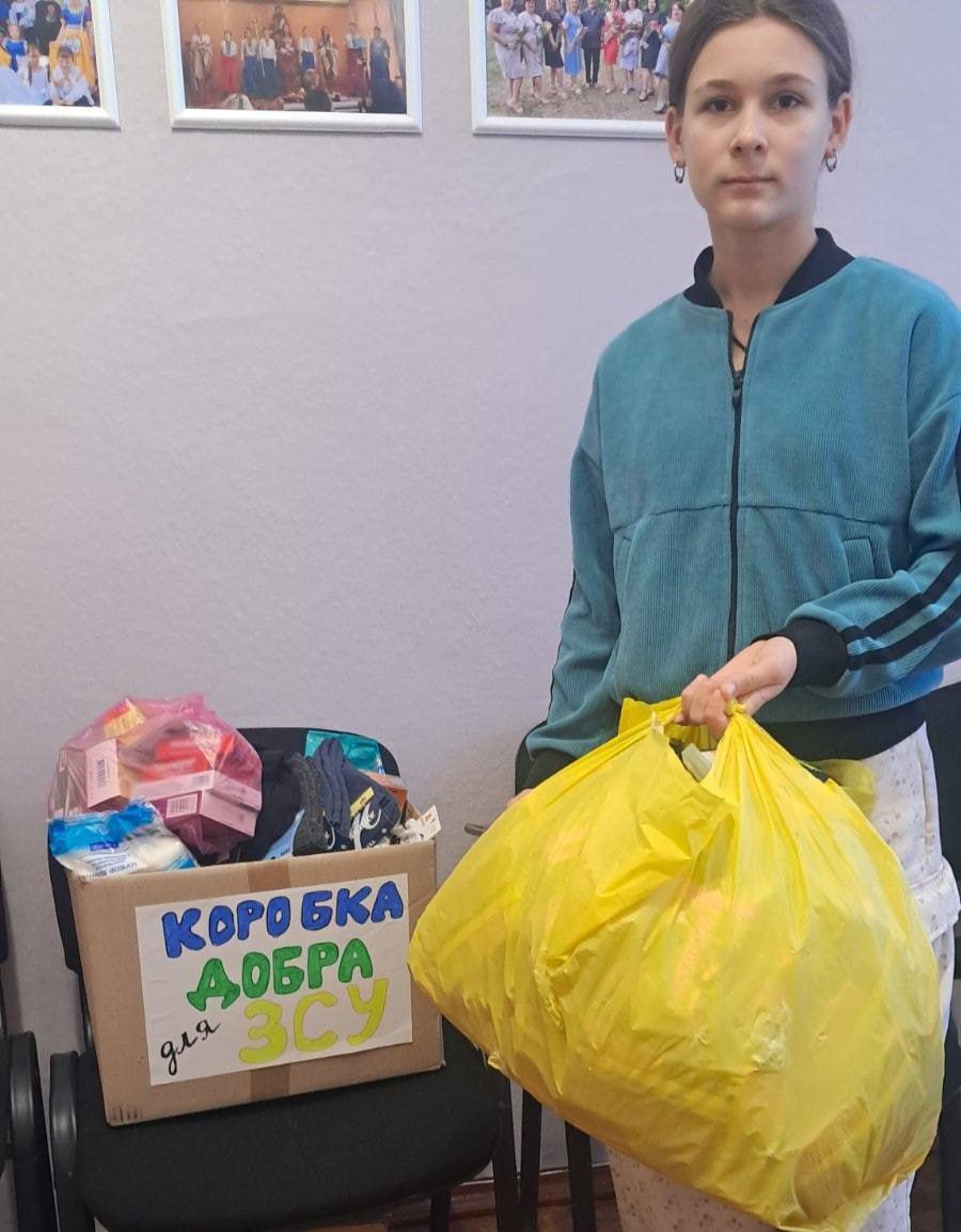 Крім того, колектив гімназії зібрав «Коробку добра» з гуманітарною допомогою: шкарпетками, чаєм, кавою, солодощами й засобами гігієни. Цю посилку разом з придбаними ліками вже відправили пані Семко.