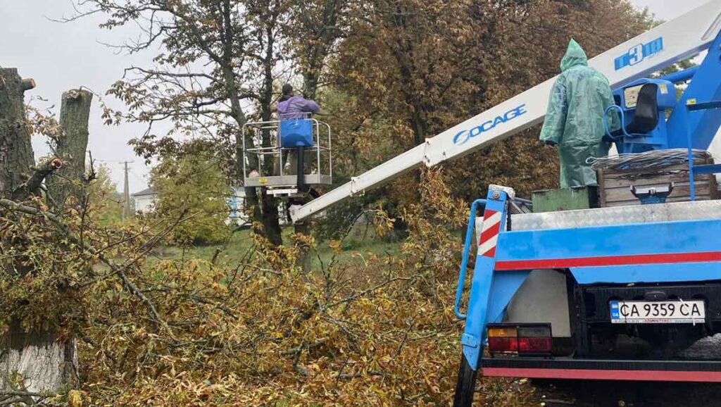 У селі на Тальнівщині провели санітарну обрізку каштанів