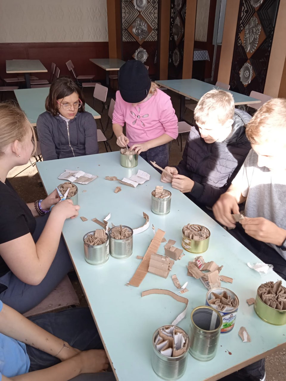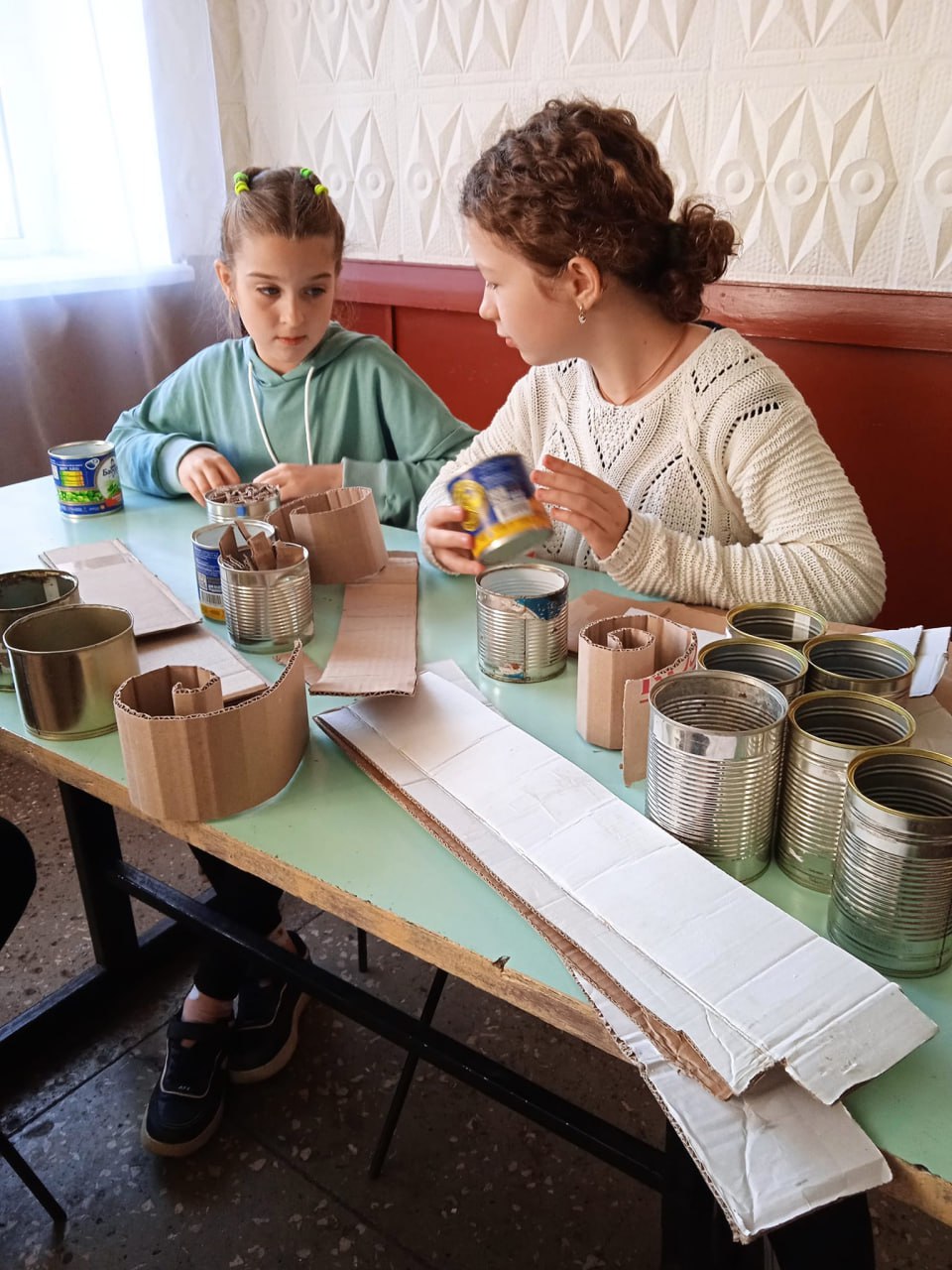 Педагог-організатор Віра Оверченко розповіла, що в одному приміщенні зібралаися учні, об’єднані спільною метою – допомогти воїнам-односельцям. По п’ять учнів з кожного класу брали участь у виконанні різних завдань. Одні підготували бляшанки. Інші нарізали картон і скрутили його в «равлики». Треті обережно розтоплювали й заливали парафін. Роботу виконували старанно й захоплено, бо кожен знав: ці свічки стануть джерельцем світла й тепла для захисників.