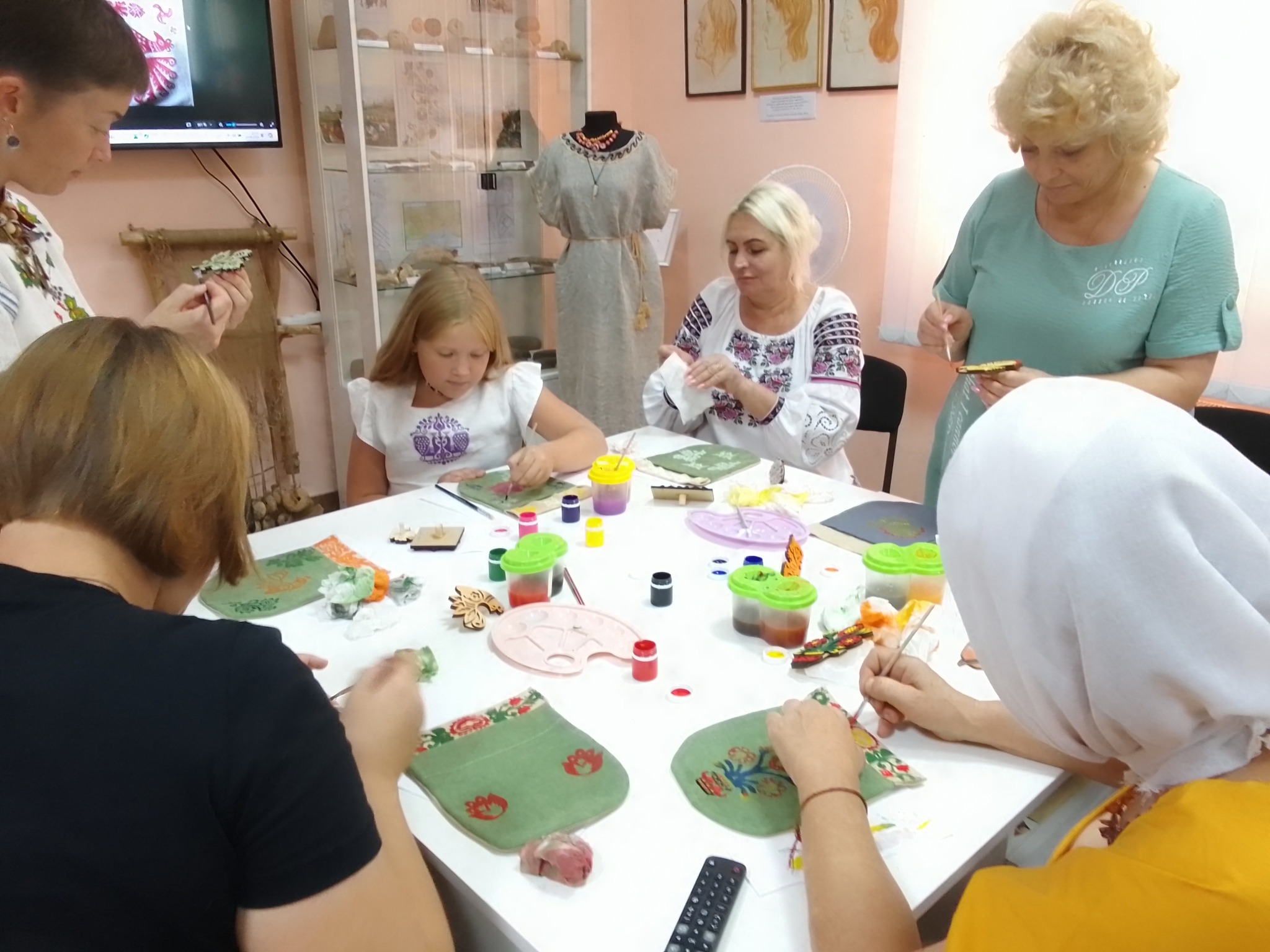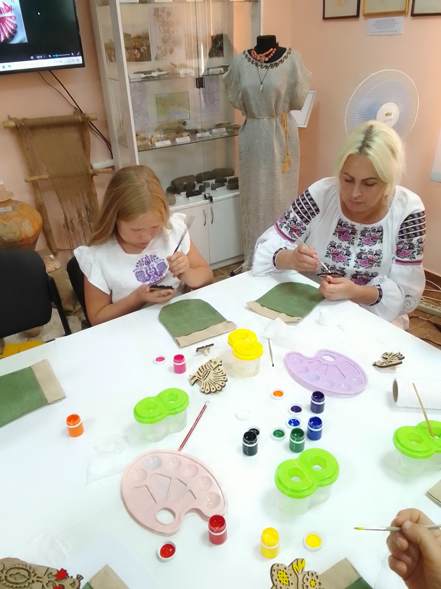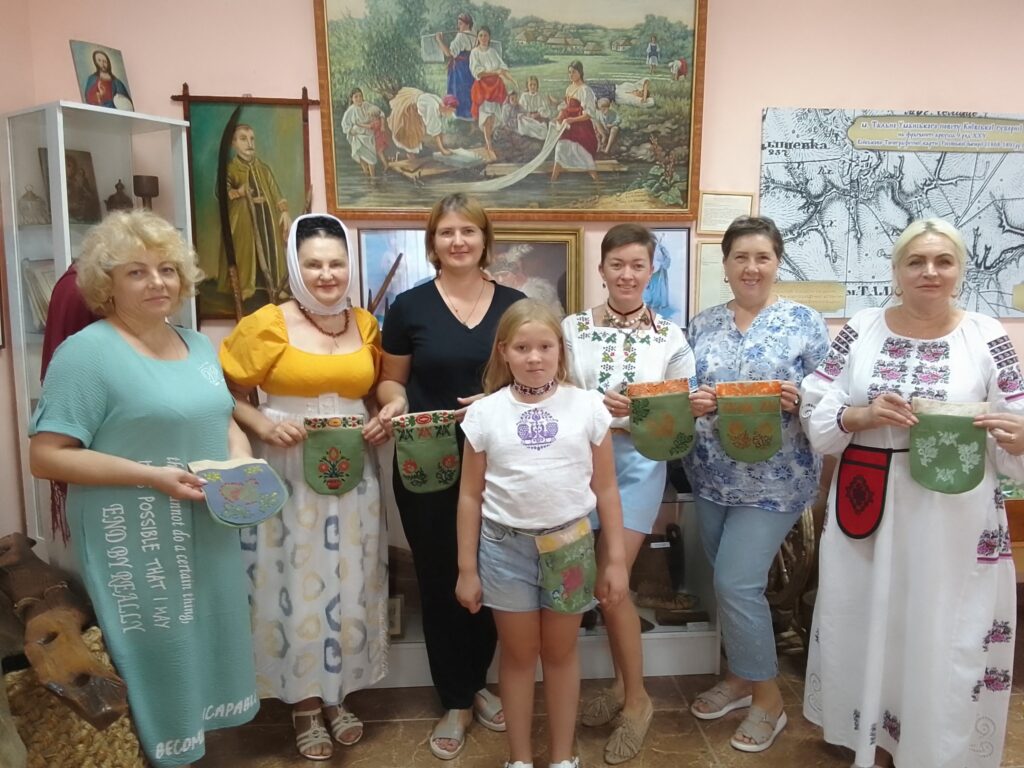 Учасники не лише дізналися про особливості кишеньки-ладунки, а й власноруч оздобили вибійками заздалегідь підготовлені для них аксесуари. Кошти на матеріали для проведення майстер-класів надав музеєві підприємець Володимир Мовчан.