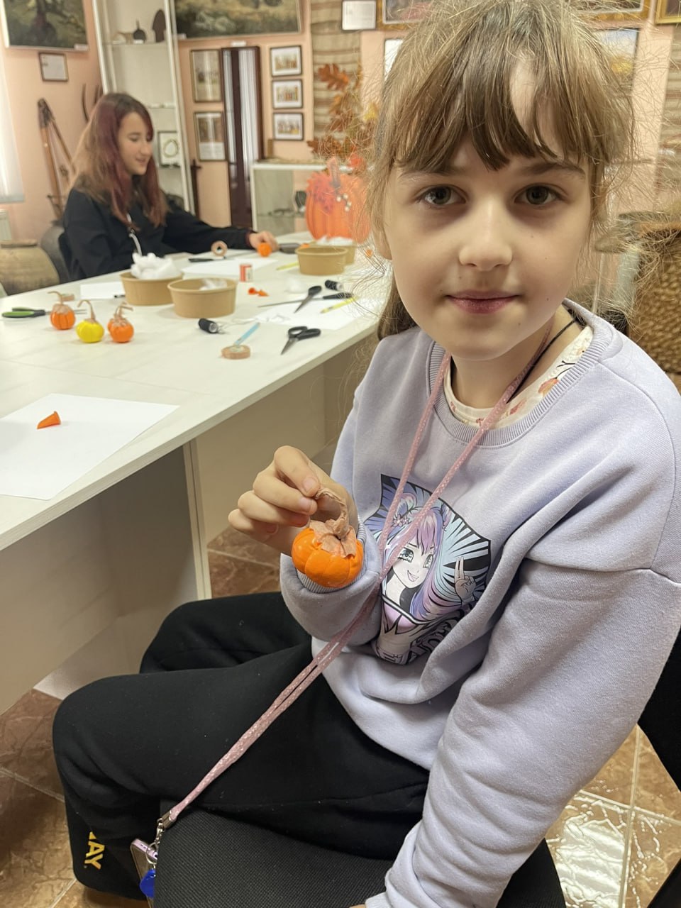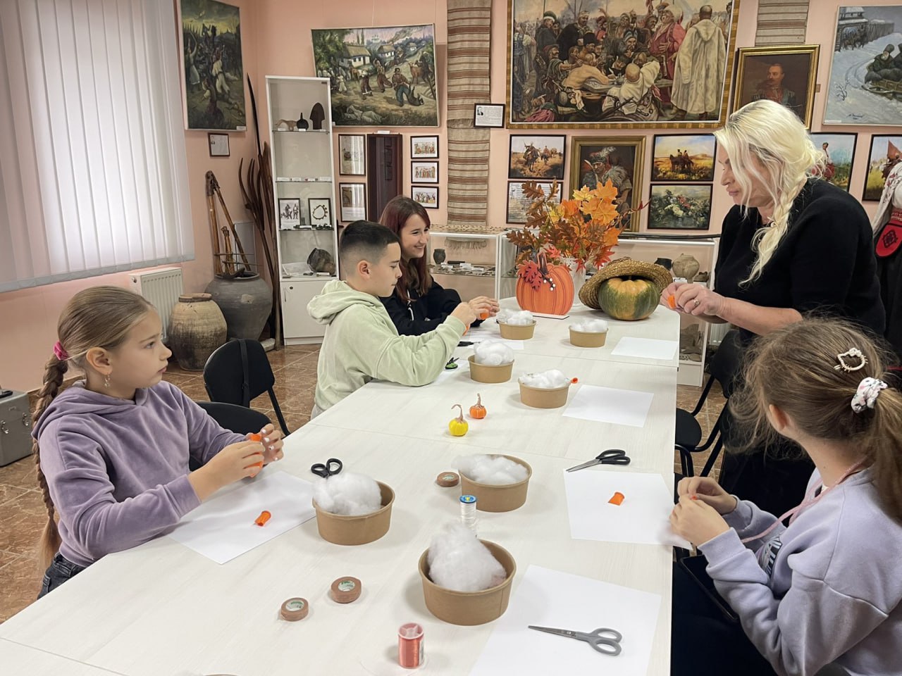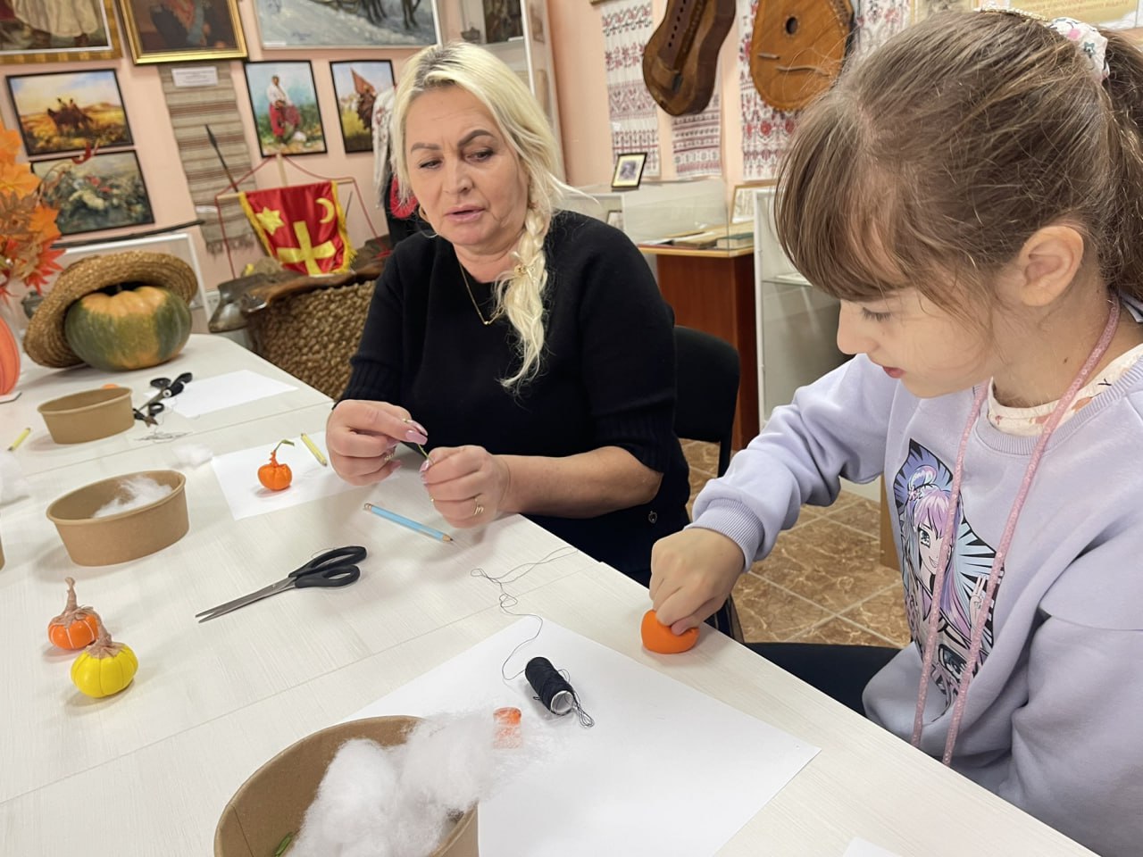 28 жовтня в музеї історії панувала справжня осіння казка – тепла, яскрава й натхненна. Тут відбувся творчий майстер-клас з виготовлення гарбузиків. Його провела майстриня, старша наукова співробітниця закладу Ольга Приходько. Разом з дітьми вона створювала сонячні осінні сувеніри з повітряних кульок, синтепону й ниток. Кожен виріб – неначе осіннє сонечко.