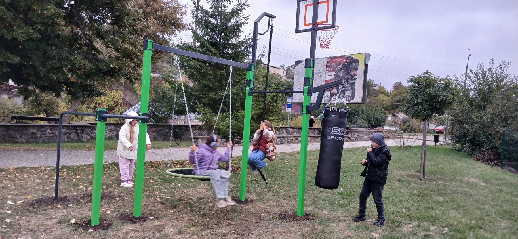 Встановлення нових елементів стало справжньою подією : батьки дякують за оновлення майданчика, а діти з нетерпінням випробовують нові спортивні снаряди.