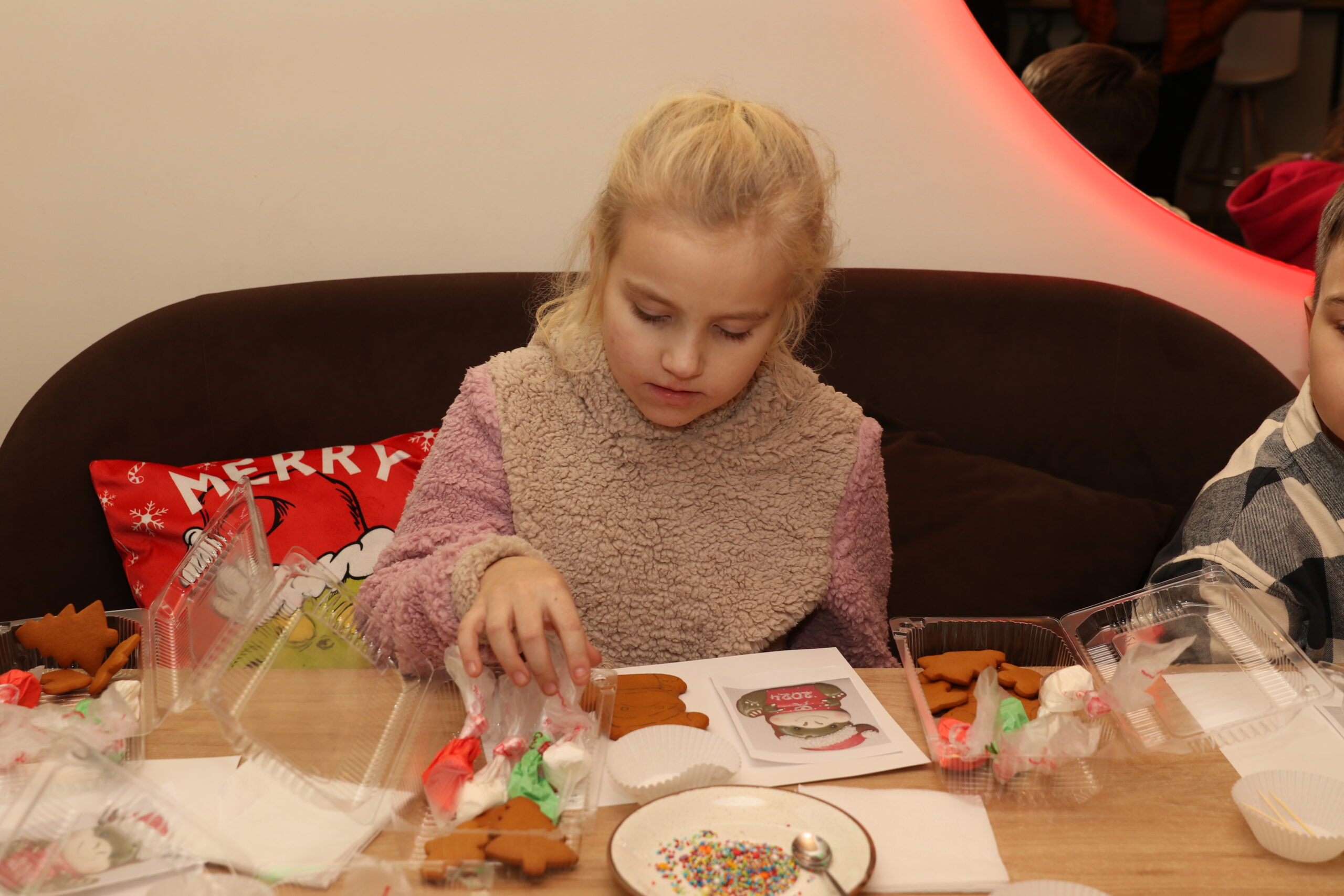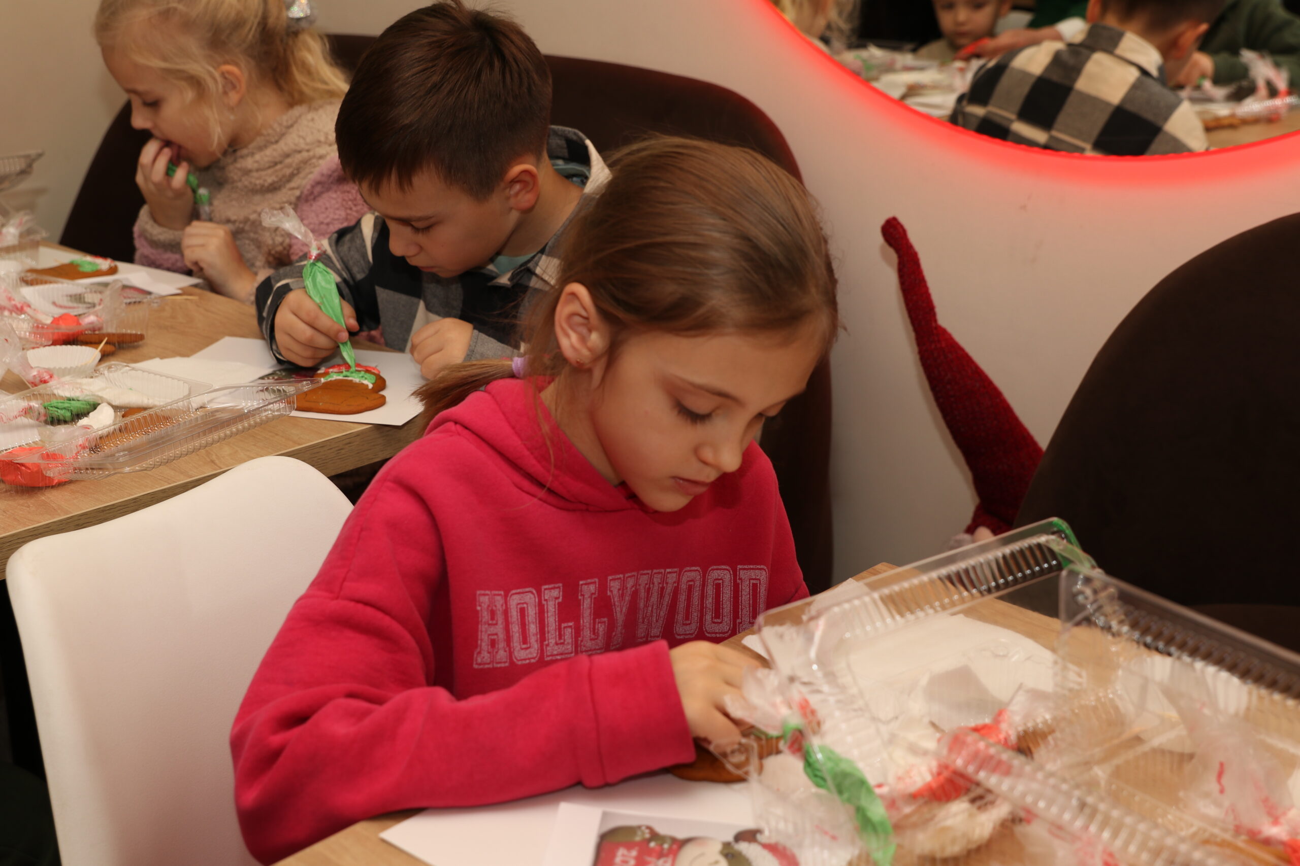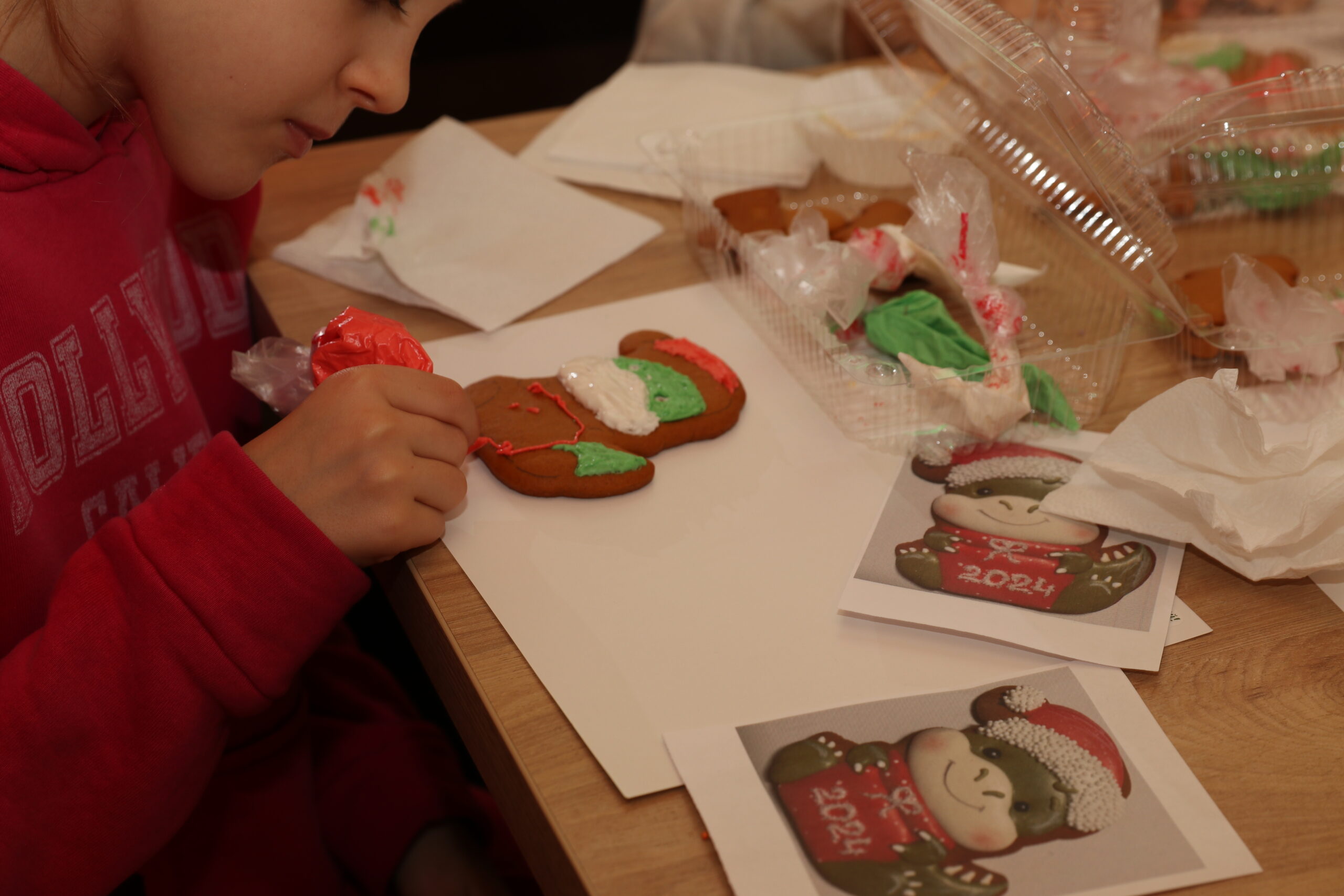 – Перед майстер-класом я підготувала кожному учаснику окремий корекс із пряниками та глазур’ю. Аби ще краще прикрасити печиво на столиках були солодкі присипки. Під час заходу ми навчалися розмальовувати новорічного дракончика, ялинку, чобіток та іграшковий пряник – пояснила Валентина Крикливенко, яка навчала найменших подробиць декорування печива діток.