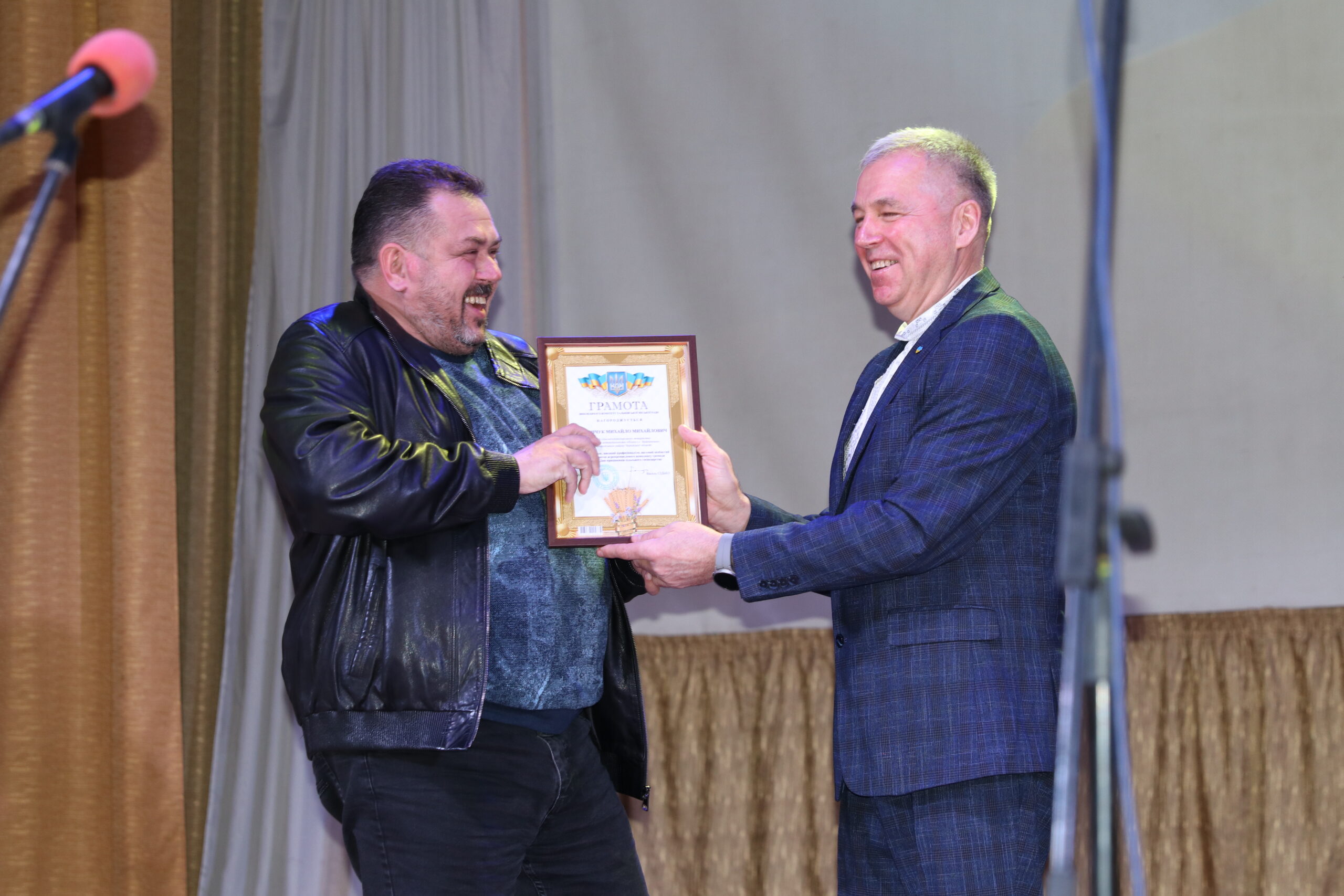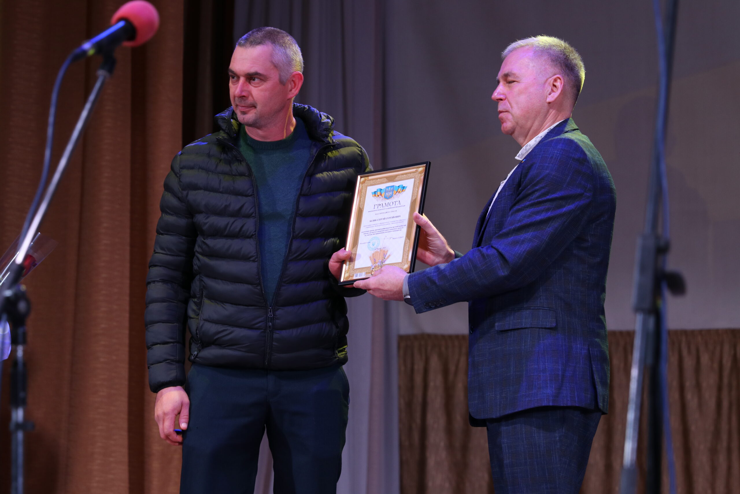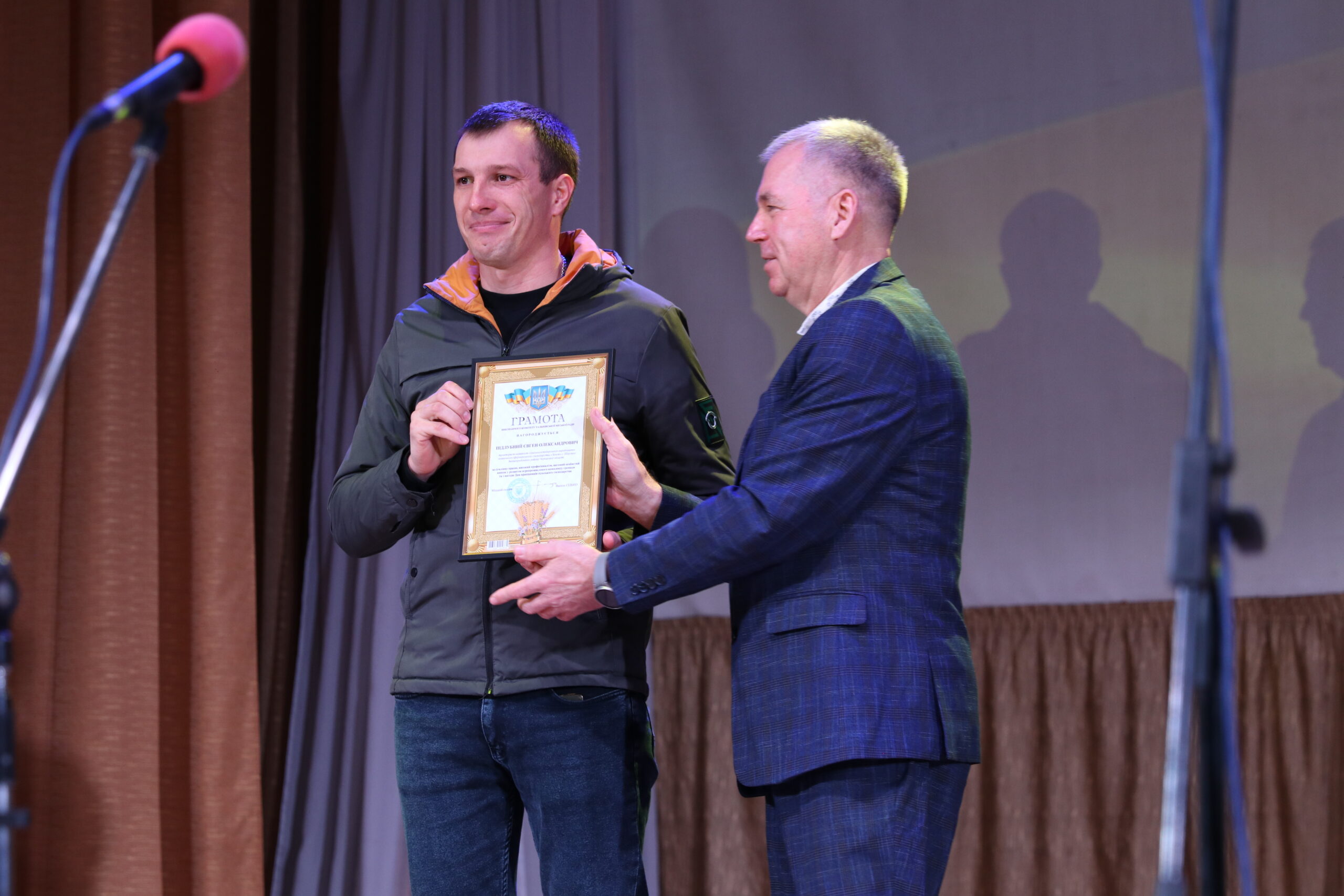 – Мені приємно бути сьогодні на цьому заході, вітати та дякувати вам, людям, які своїми руками й розумом забезпечують нас хлібом, овочами, фруктами, молочною та м’ясною продукцією. Земля і люди – найсвятіше, а ваша праця викликає особливу повагу. Ви тримаєте продовольчу безпеку громади та країни, ваша робота – свята і безперервна, як саме життя. Аграрії не лише забезпечують продукти, а й підтримують Збройні сили: донатами, волонтерством, закупівлею необхідного. Дякую захисникам на фронті та ветеранам галузі, які будували села й інфраструктуру. Щиро дякую всім сільськогосподарським підприємствам за податки, робочі місця і щоденну працю. Бажаю вам здоров’я, наснаги та гарних урожаїв, а вашим рідним і працівникам на фронті – безпечного повернення. Тримаємося разом. Слава Україні! – звернувся до глядачів міський голова Василь Сідько й залишився на сцені для привітання присутніх сільгосппрацівників.