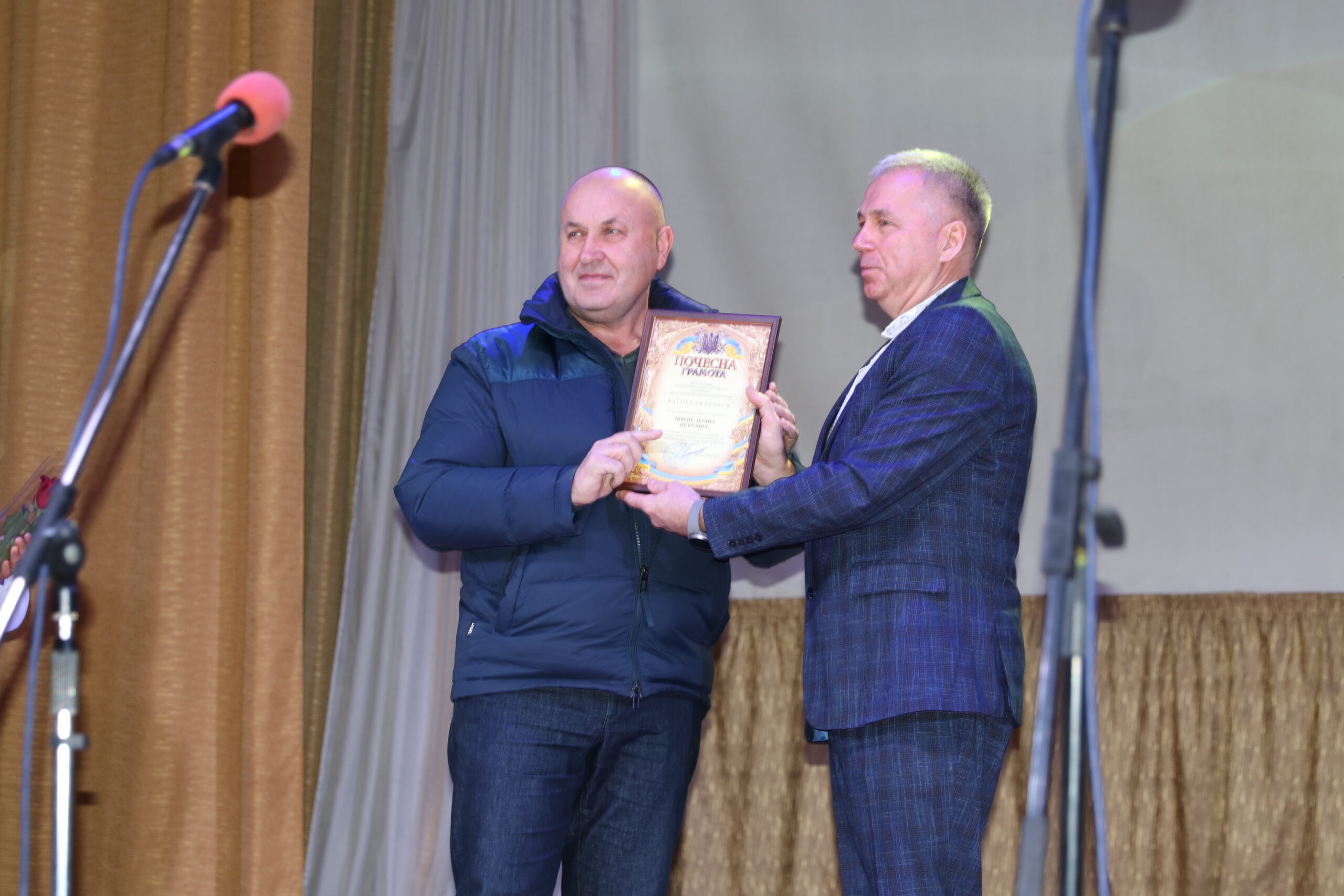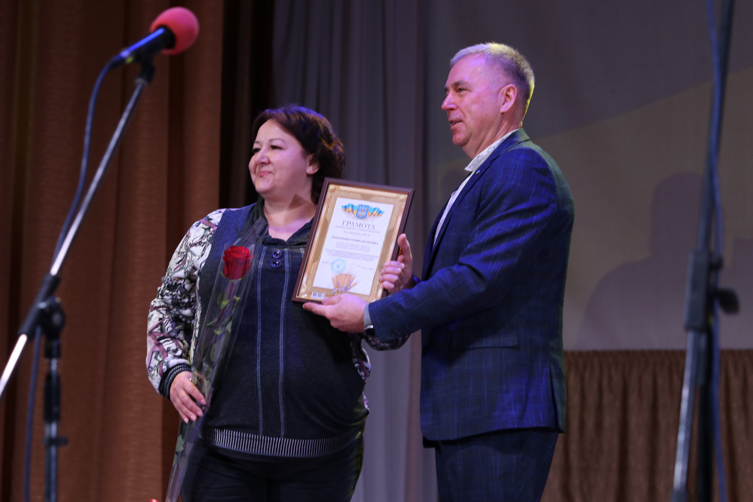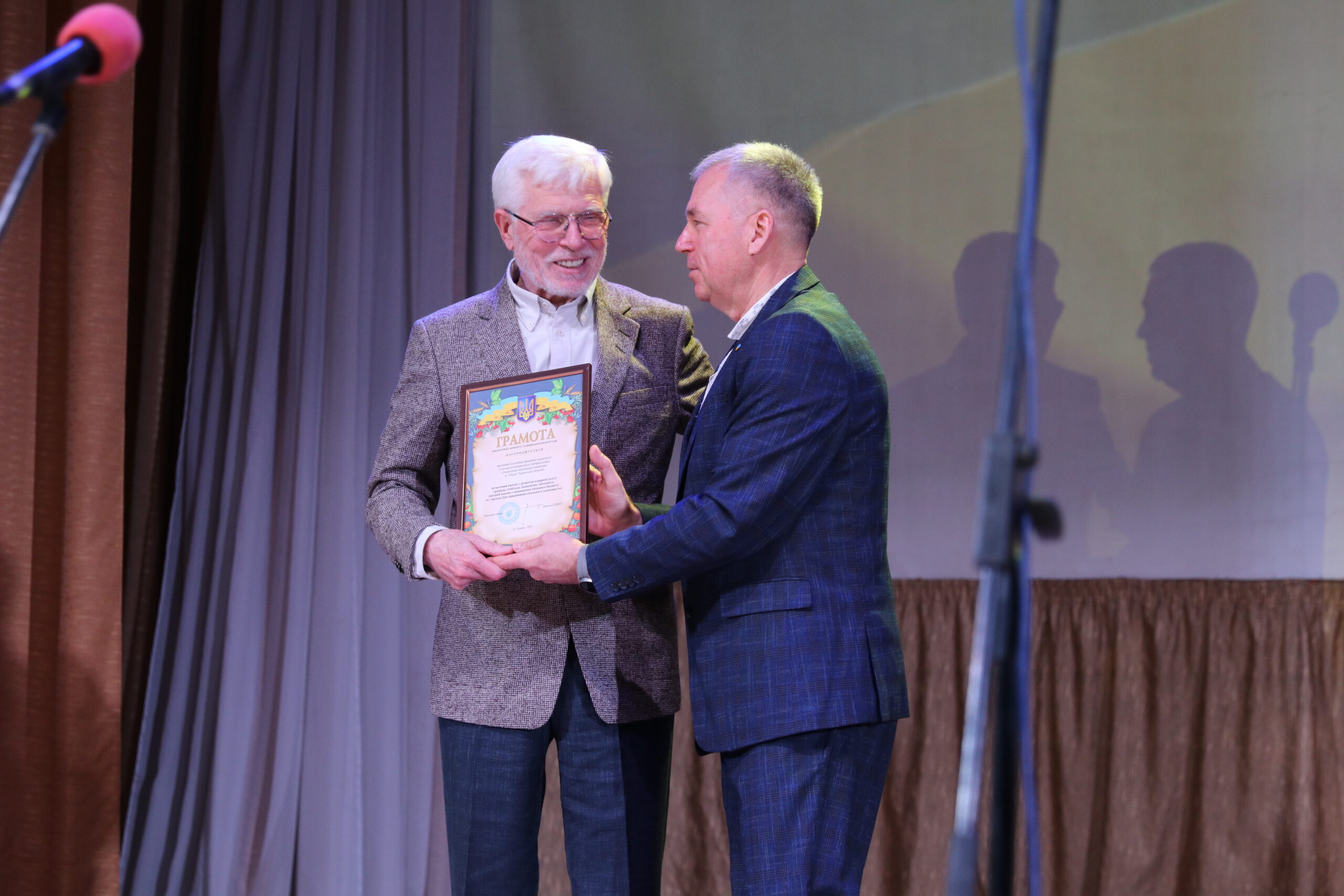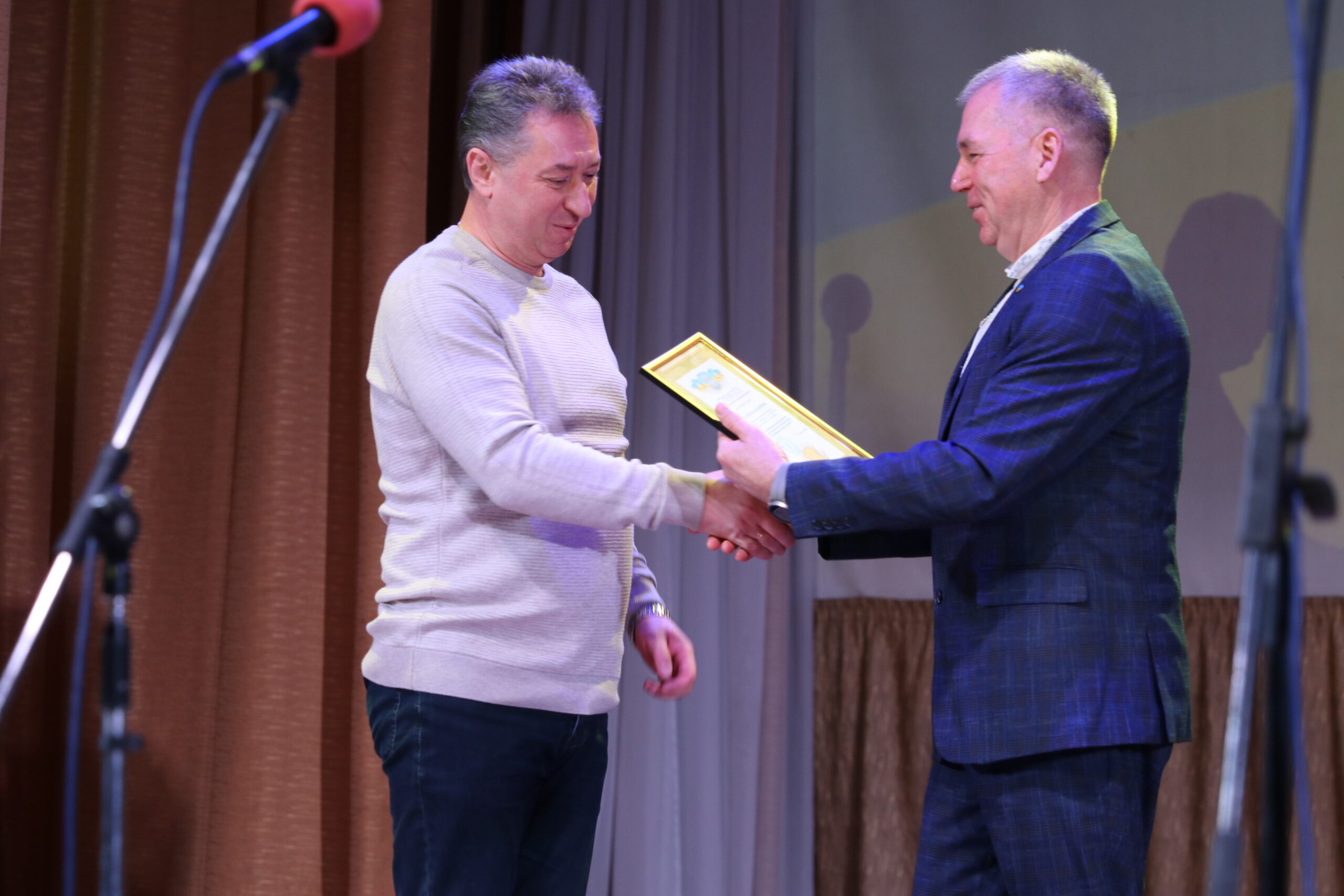 – Мені приємно бути сьогодні на цьому заході, вітати та дякувати вам, людям, які своїми руками й розумом забезпечують нас хлібом, овочами, фруктами, молочною та м’ясною продукцією. Земля і люди – найсвятіше, а ваша праця викликає особливу повагу. Ви тримаєте продовольчу безпеку громади та країни, ваша робота – свята і безперервна, як саме життя. Аграрії не лише забезпечують продукти, а й підтримують Збройні сили: донатами, волонтерством, закупівлею необхідного. Дякую захисникам на фронті та ветеранам галузі, які будували села й інфраструктуру. Щиро дякую всім сільськогосподарським підприємствам за податки, робочі місця і щоденну працю. Бажаю вам здоров’я, наснаги та гарних урожаїв, а вашим рідним і працівникам на фронті – безпечного повернення. Тримаємося разом. Слава Україні! – звернувся до глядачів міський голова Василь Сідько й залишився на сцені для привітання присутніх сільгосппрацівників.
