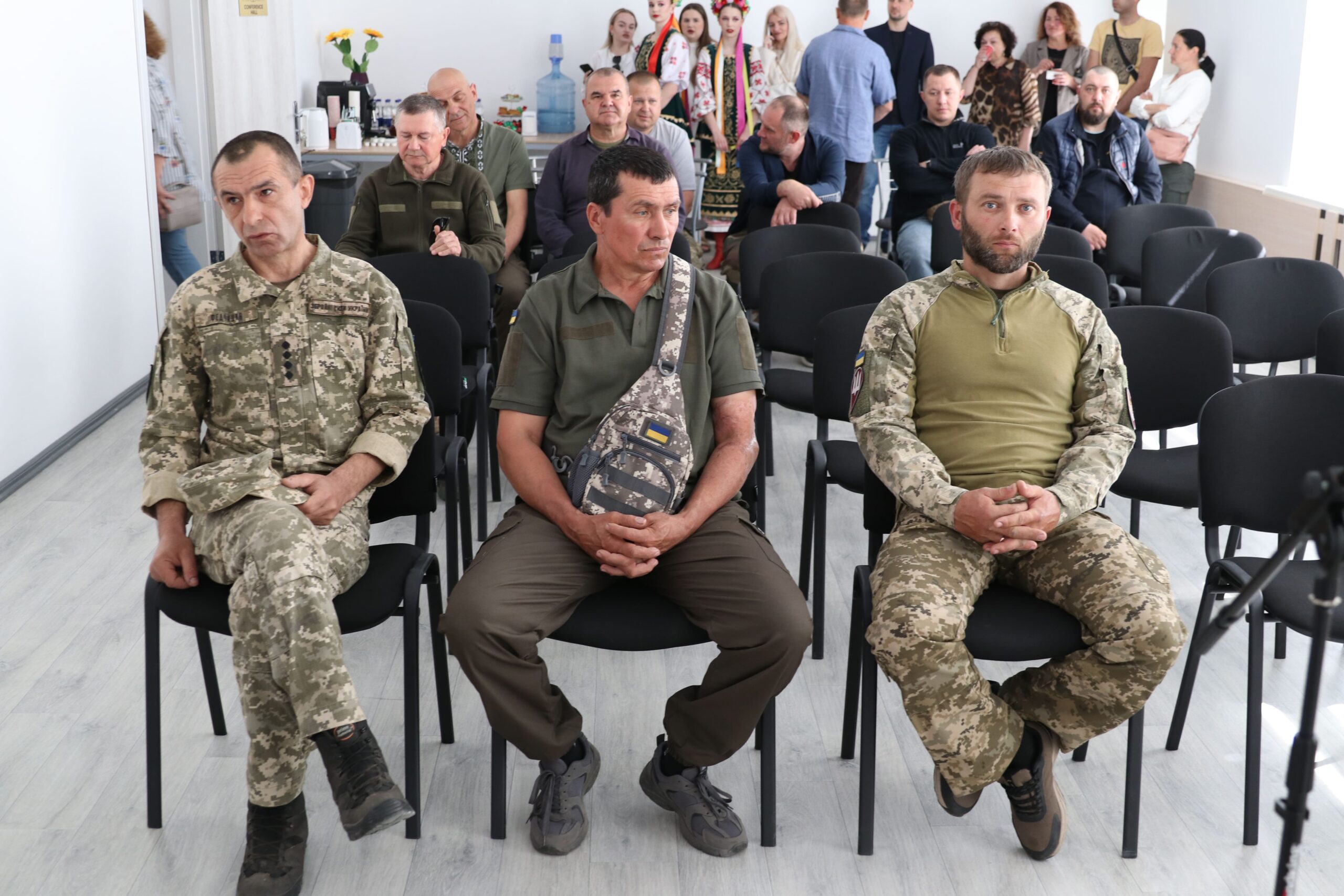 – Сьогодні ми відкриваємо центр підтримки соціально-військової реабілітації. Це такий собі ветеранський простір, куди можуть приходити наші воїни, які вже відвоювали. Ми також чекаємо тут військових, які ще мають повернутися – для них двері завжди відкриті. Ви можете приходити сюди не лише самі, а й зі своїми сім’ями, з дітками. Ми також розробимо зручний план відвідування для всіх охочих, відповідно до ваших потреб. Ми вперше відкриваємо такий центр, тому нам дуже важливо почути вас. Не соромтесь, розповідайте, що вам потрібно, і ми будемо підлаштовуватись під вас. Цей центр ми створювали всім гуртом. Уся громада долучилась, особливо приємно, що допомагало багато студентів нашого коледжу. Сьогодні я хочу щиро подякувати цим молодим людям за їхню працю. І хочу відзначити їх почесними грамотами.