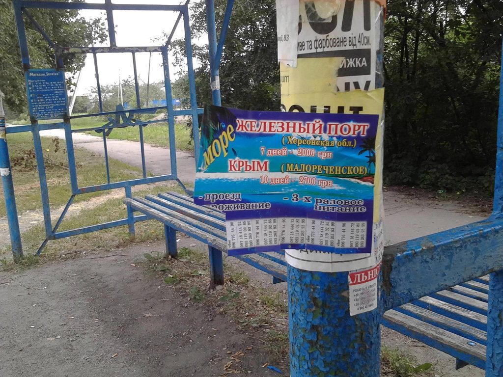 “У цих людей немає поваги ні до себе, ні до загиблих на війні. Їм плювати на захисників України. Відпочивають і платять агресору, який анексував Крим. Нічого святого нема”, – каже біля одного із оголошень учасник АТО, який прийшов у відпустку.