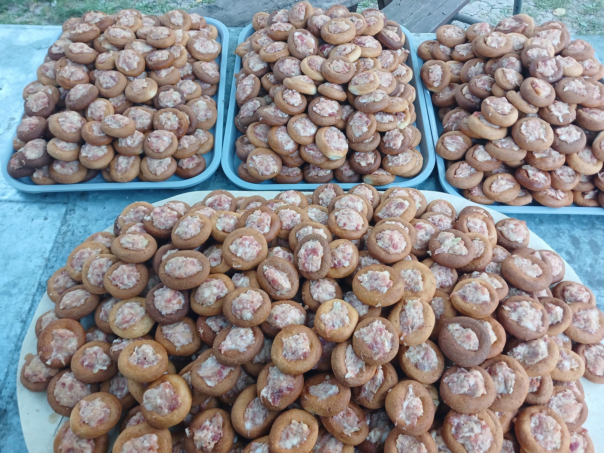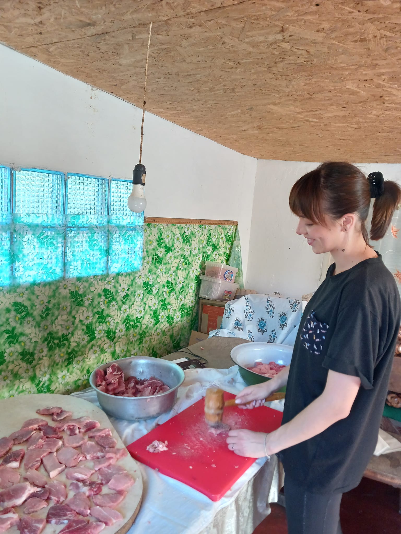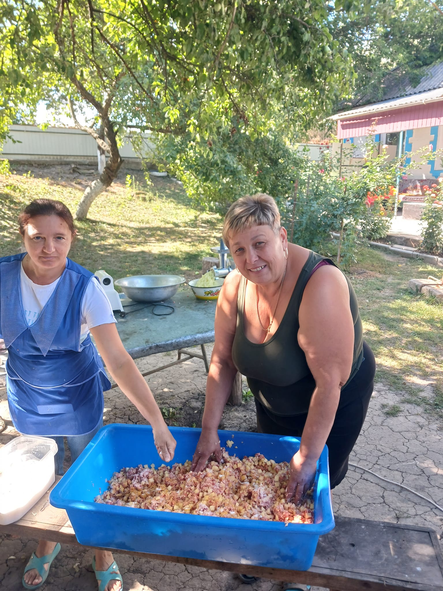 За словами жінки, заготовок вдалося зробити чимало: 300 начинених болгарських перців, 300 котлет, 640 бубликів. Також заготували шкварки із м’яса (будуть до макаронів), начинили домашньої ковбаски (з м’ясом та з картоплею), зробили вафлі із м’ясом та заготовки на плов. Крім м’ясних страв, заквасили 16 відерець помідорів. Планують готувати, як і завжди, ще салати по-корейські, оселедці й інші страви.