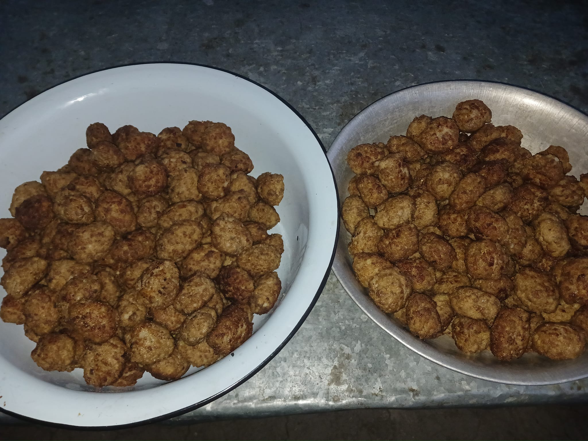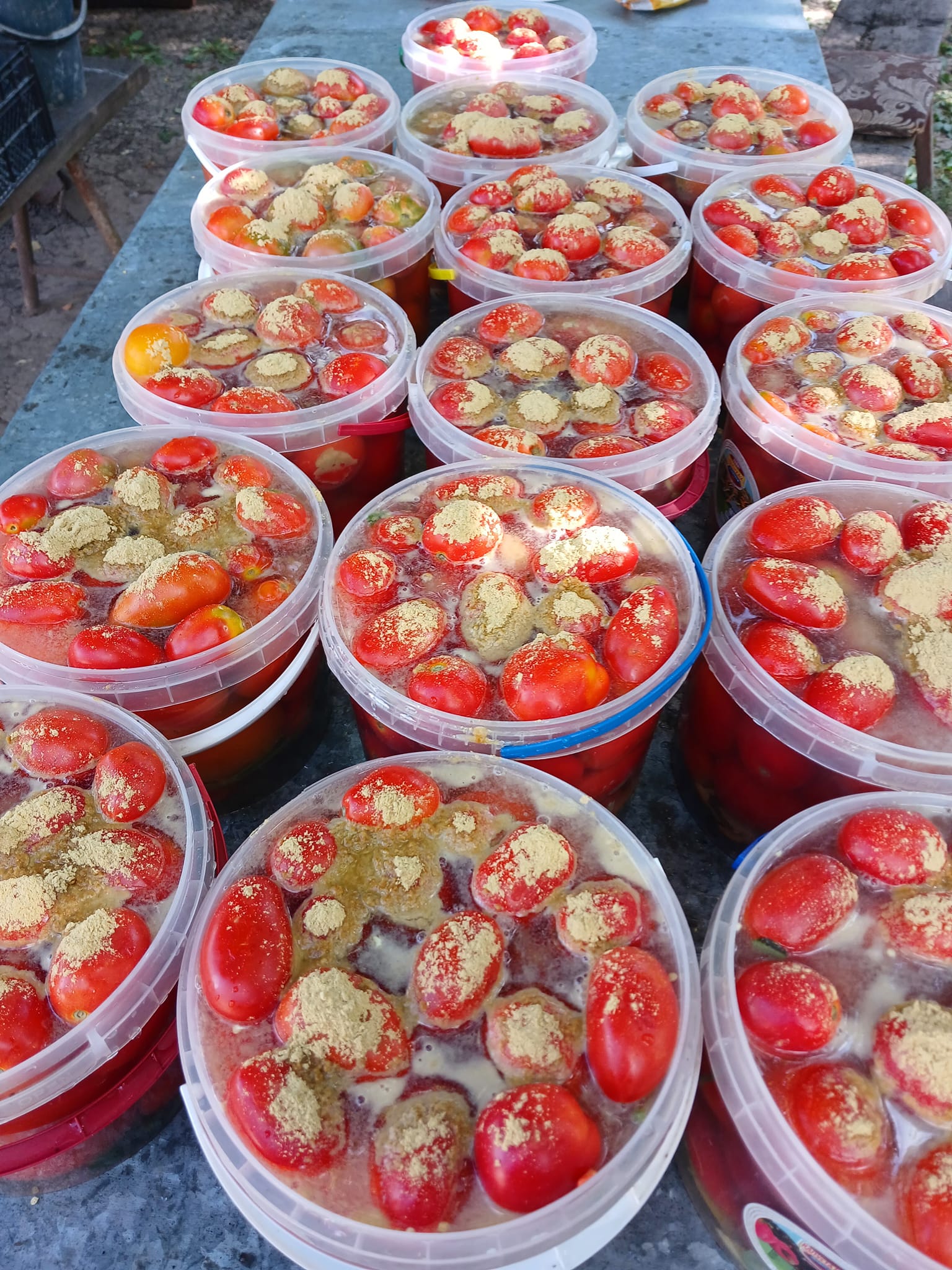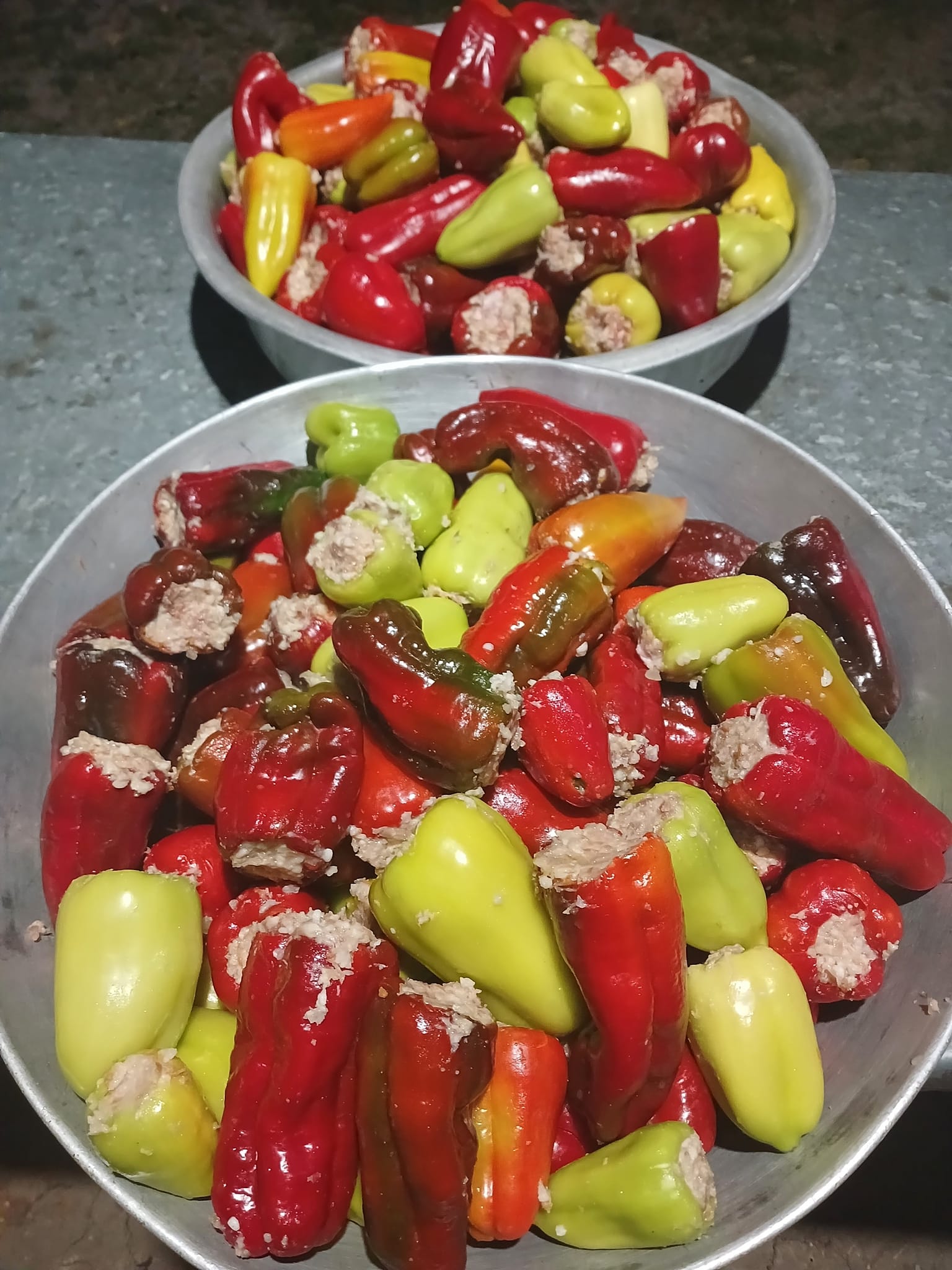За словами жінки, заготовок вдалося зробити чимало: 300 начинених болгарських перців, 300 котлет, 640 бубликів. Також заготували шкварки із м’яса (будуть до макаронів), начинили домашньої ковбаски (з м’ясом та з картоплею), зробили вафлі із м’ясом та заготовки на плов. Крім м’ясних страв, заквасили 16 відерець помідорів. Планують готувати, як і завжди, ще салати по-корейські, оселедці й інші страви.