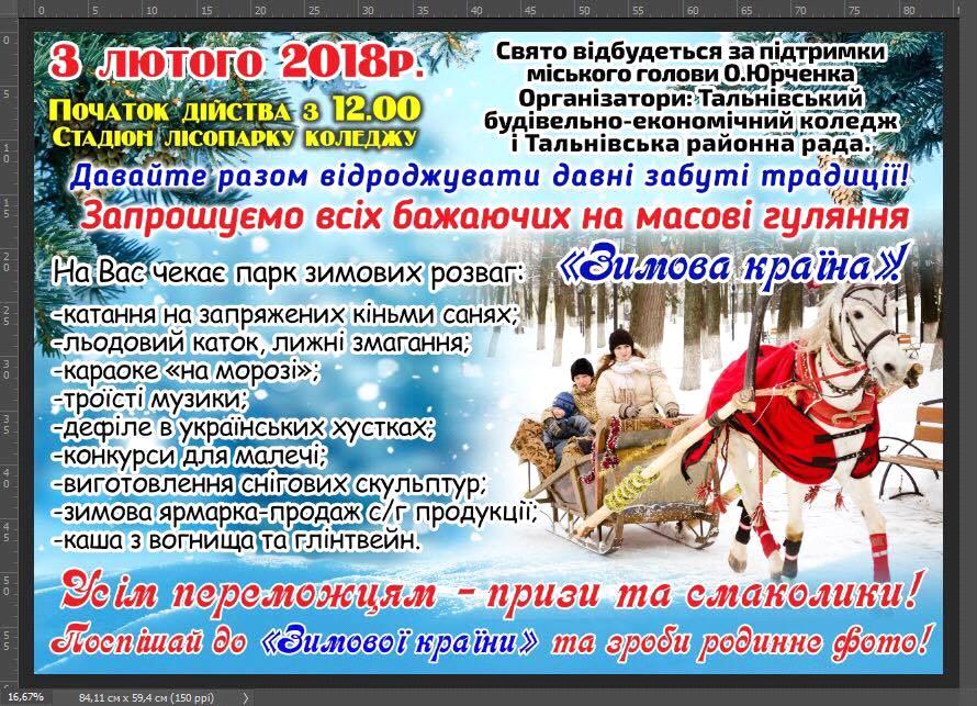 В Тальному відбудуться масові гуляння ''Зимова країна''