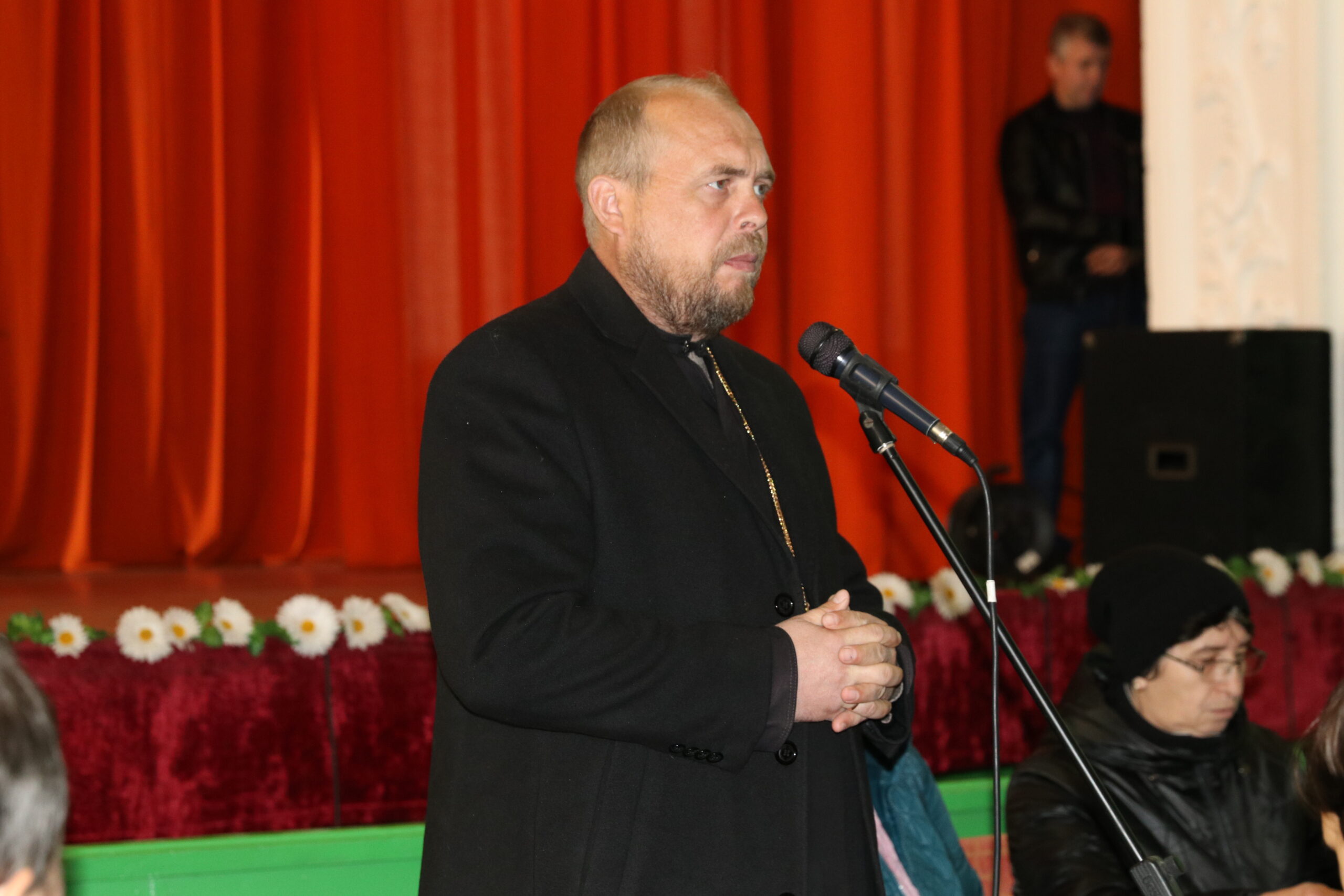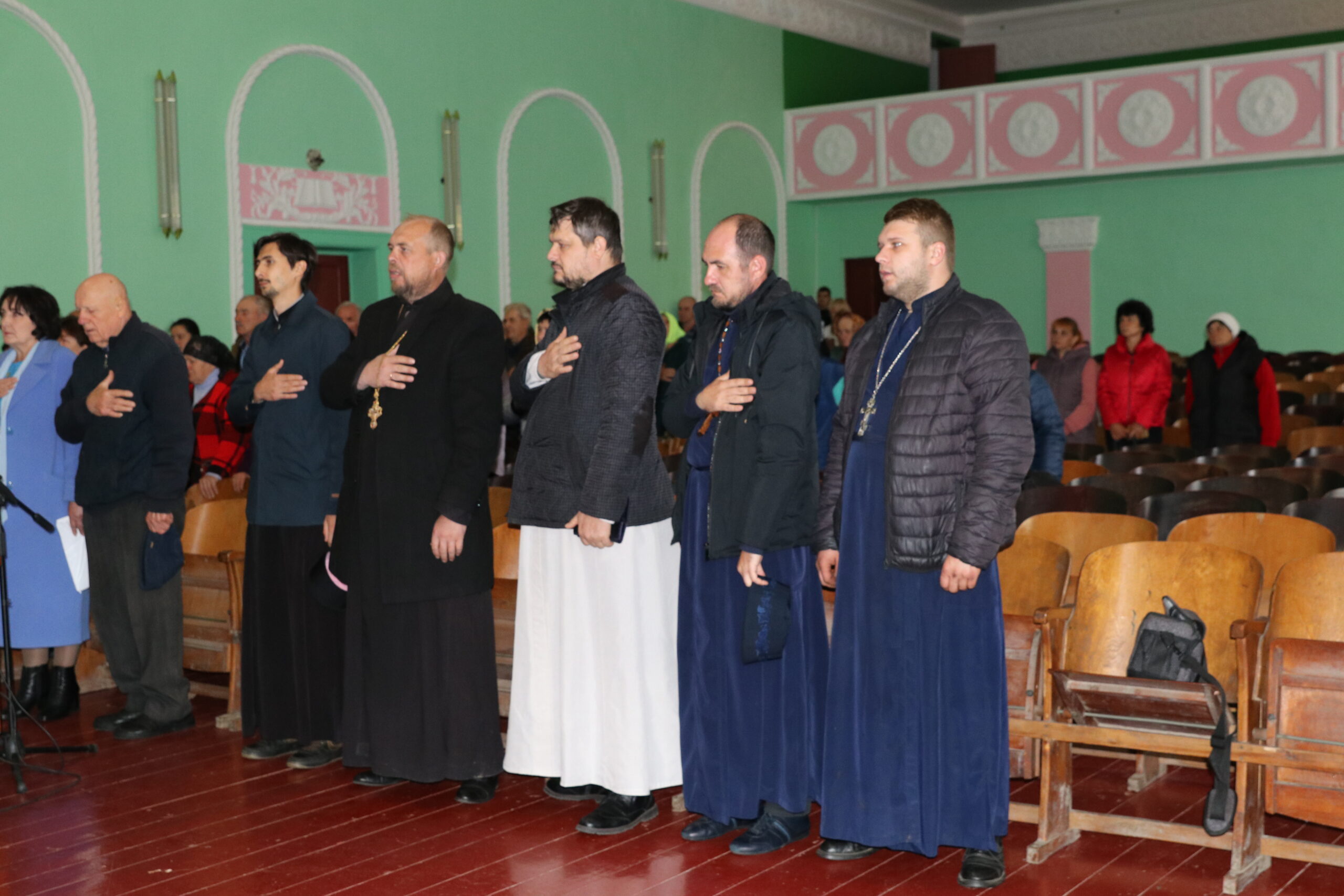 Також на збори прибув благочинний Тальнівської громади Андрій Гаргат. Разом із священниками, які відбудовують Православну Церкву України у селах Тальнівщини, він провів молитву та звернуся до вишнопільців.