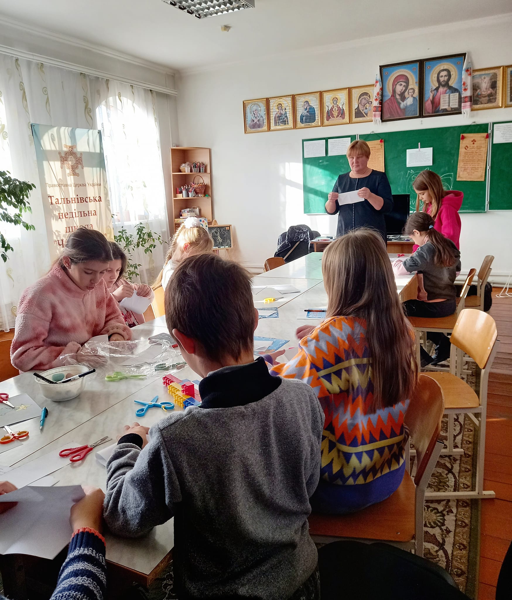 Поза основним місцем роботи Людмила Петрівна ще працює у недільній школі у Петропавлівському храмі Тального. Тут, каже, розпочала проводити заняття відколи відкрився храм.