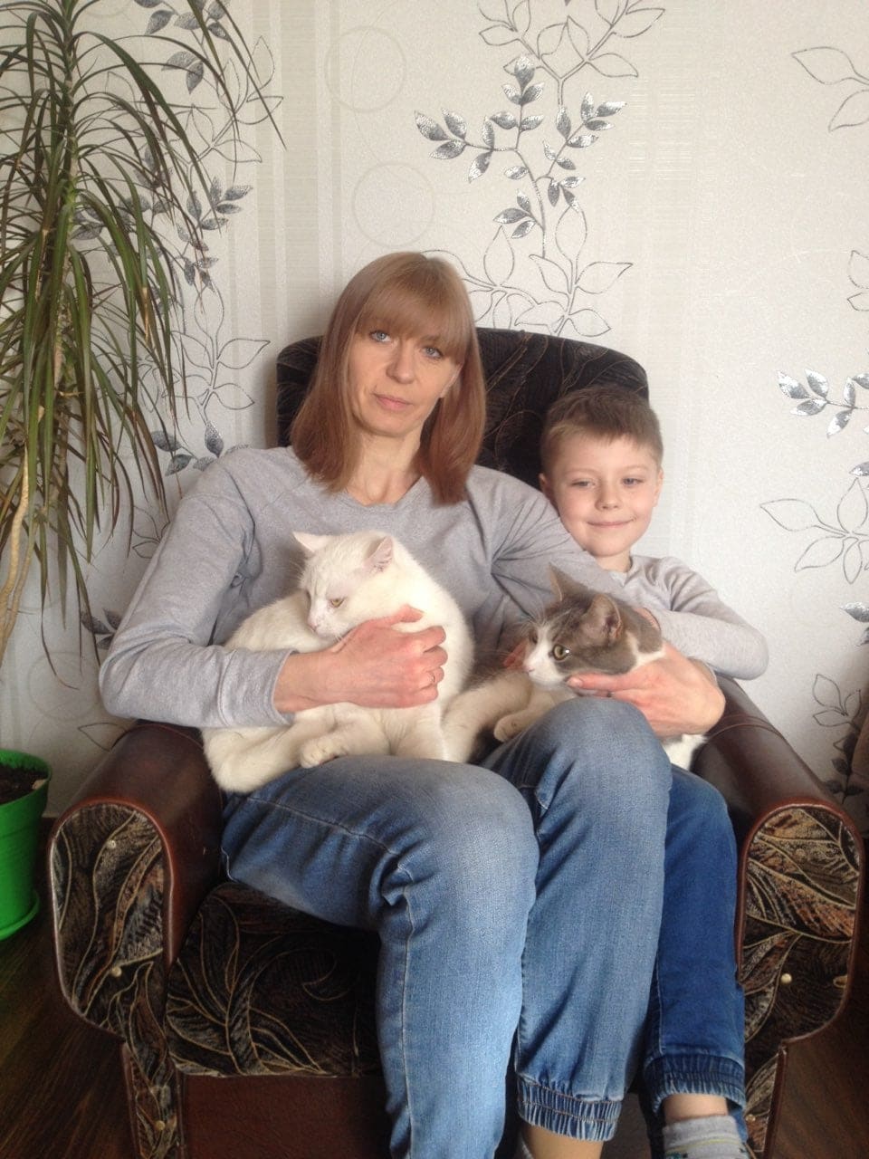 – Зараз у нашій сім’ї є кішка Мася і кіт Сніжок. Мася ровесниця мого сина, їй 7,5 років, а Сніжка 5 років тому я знайшла випадково – плакав на дереві. Я зняла його, думала комусь віддати, але ніхто не хотів забирати. Мій син Олег облюбував мале білосніжне кошеня і ми залишили його собі. Любові до тварин я навчаю його з раннього дитинства. В нас ще є хом’як, великий акваріум з рибками, чекаємо тепла, бо дитина зібрала кошти, за які хоче придбати собаку – лабрадора.