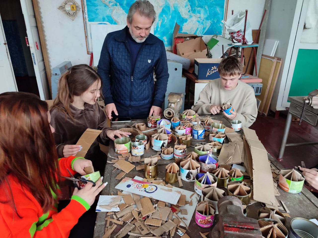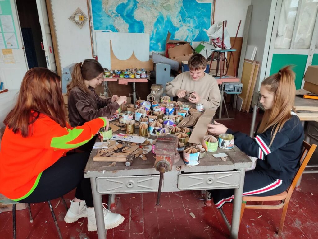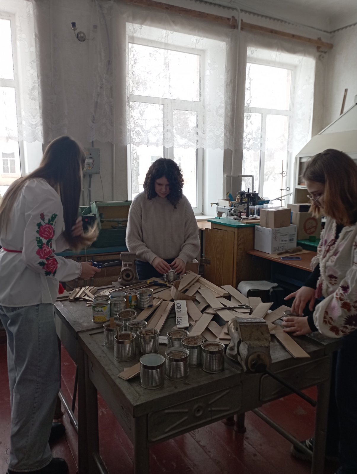 Директор навчального закладу Олег Цимбал з перших місяців великої війни організував волонтерський осередок для допомоги ЗСУ. Учні, вчителі, технічні працівники минулого року плели маскувальні сітки, нині виготовляють окопні свічки, обігрівачі й передають військовим.