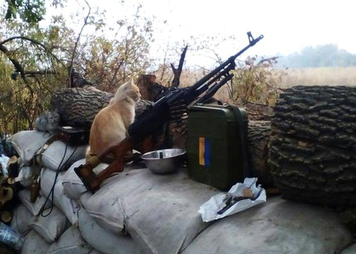 “Їх звали Вуглик і Сірий. Бій, стрілянина, а вони позицією лазять. Зовсім безбашенні коти. Якось помітив, що вони ніколи на розтяжках не підриваються. Обходять. Міни чують носом. Покискав. Іду й кидаю їм уперед ковбасу. Задаю напрям. Вони обходять усі пастки і я за ними. Так стежку до сепарів і протоптав. Потім тією стежкою в тил їм кілька разів виходили. Котів до нагороди представили”, – сміється.