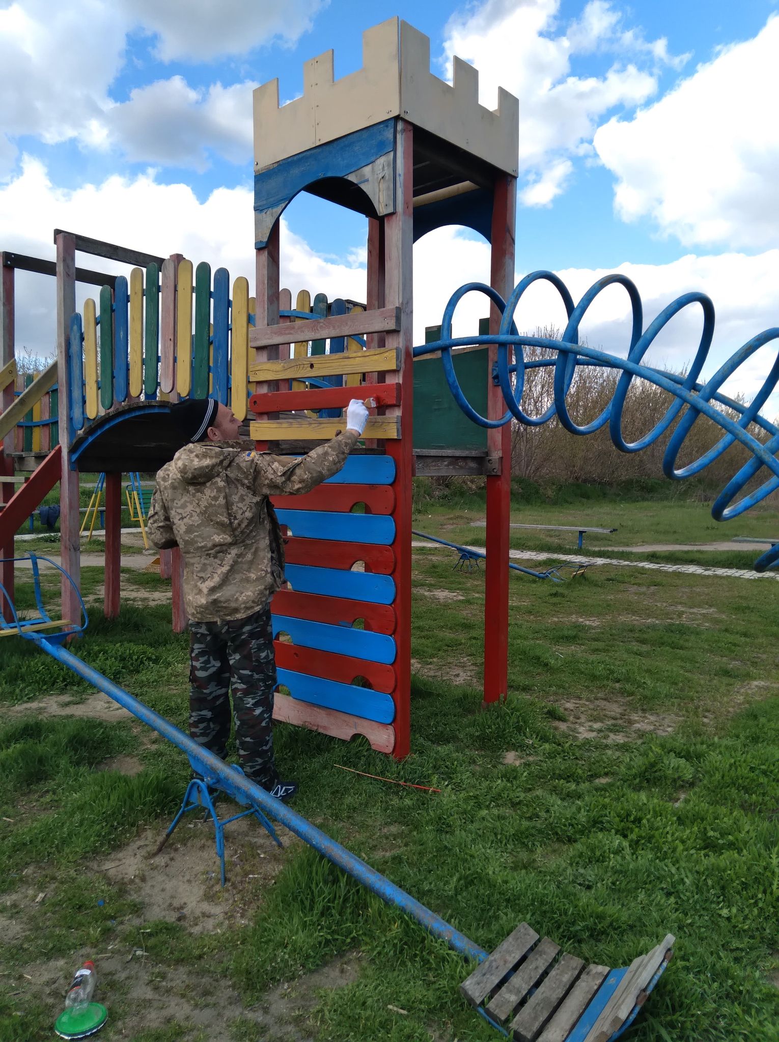 24 квітня на майданчику закипіла робота: територію прибрали – повигрібали сміття та листя, на гойдалках та ігровому комплексі старі дошки замінили на нові, встановили їх і там, де вони були виламані недобросовісними тальнівчанами. Усе пофарбували у яскраві кольори. Тепер майданчик вже не нагадує «привид», а приваблює своїм різнобарв’ям дітей, що живуть неподалік.