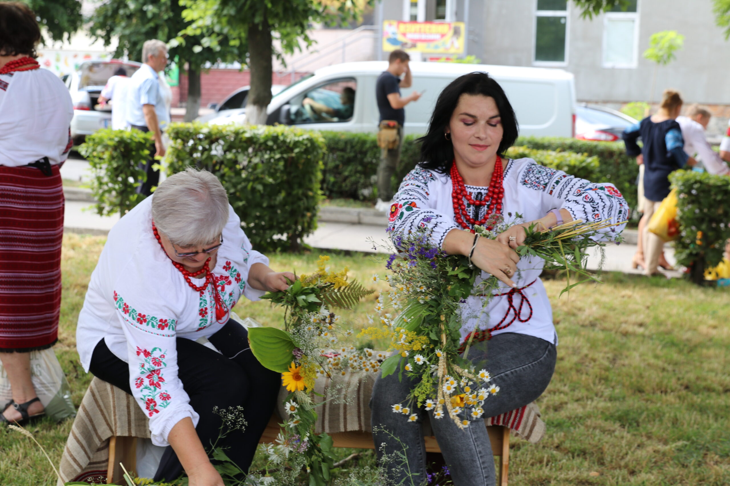 Можна було спробувати плести віночки із 12 традиційних квітів, цього навчали дві майстрині, вбрані у гарні українські сорочки.