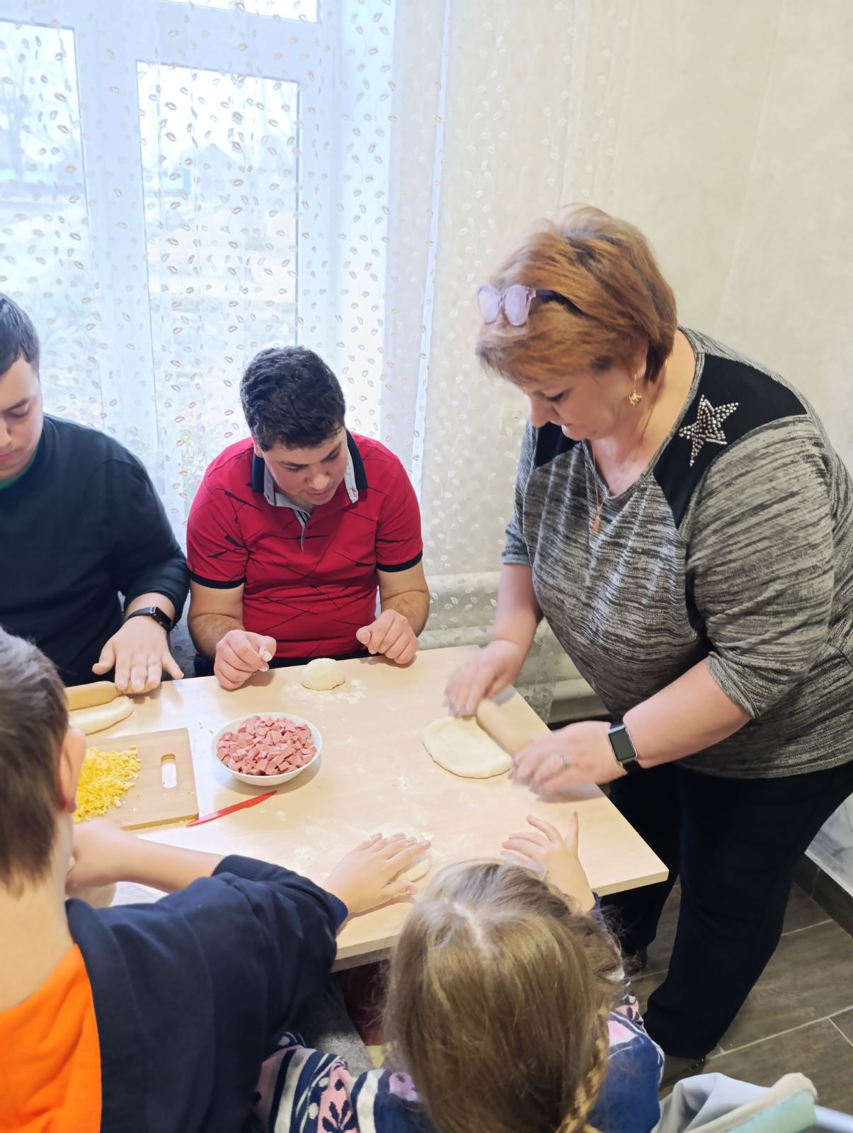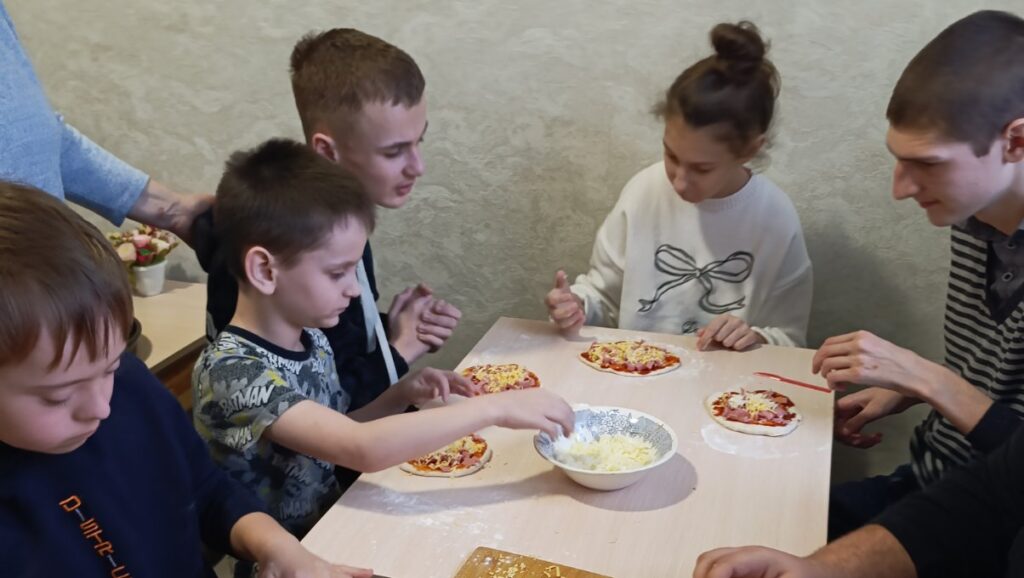 Працівники закладу заздалегідь підготували тісто, а дітям дали можливість проявити свою творчість. Вони обрали традиційні інгредієнти для піци – кетчуп, ковбасу та сир. Однак перед тим, як прикрасити піцу, вихованці активно допомагали готувати інгредієнти: різали ковбасу, натирали сир на тертушці й розкачували готове тісто. У кожного була своя маленька роль у цьому процесі, що додавало дітям відчуття самостійності.