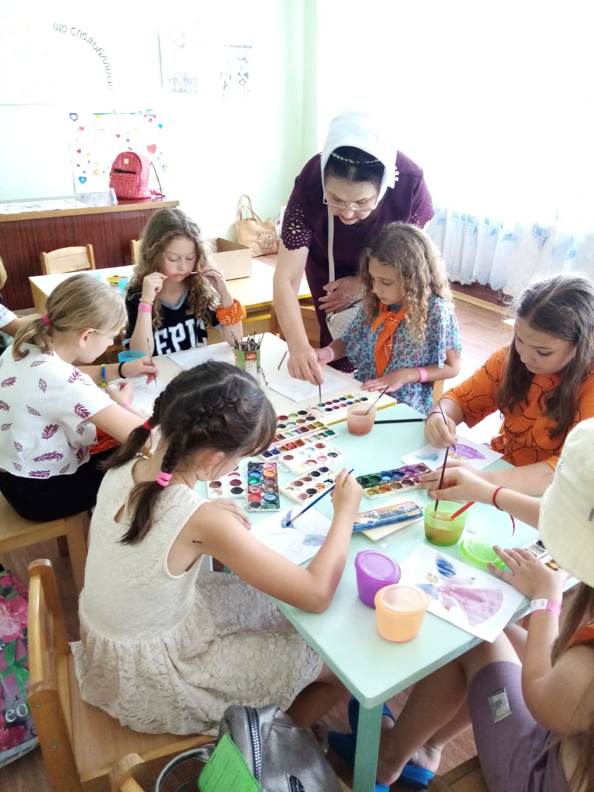 – Я пройшла школу народознавства, вивчала український народний побут, звичаї, що склалися, випробувалися на міцність протягом багатьох століть. Переконана, що нам необхідно зберегти все цінне для України й у духовному вимірі. З першокласниками ми обов’язково малюємо квітку Берегиню – уособлення Матері Божої Оранти. Діти зображають три будь-які квітки. Потім прикрашають так, як вони собі бачать цей оберіг: ягідками, дрібними квіточками, листочками. Вазон розміщують не в горщику, а в трикутничку, у якому око Господнє Всевидюще, – розповідає Надія Володимирівна.