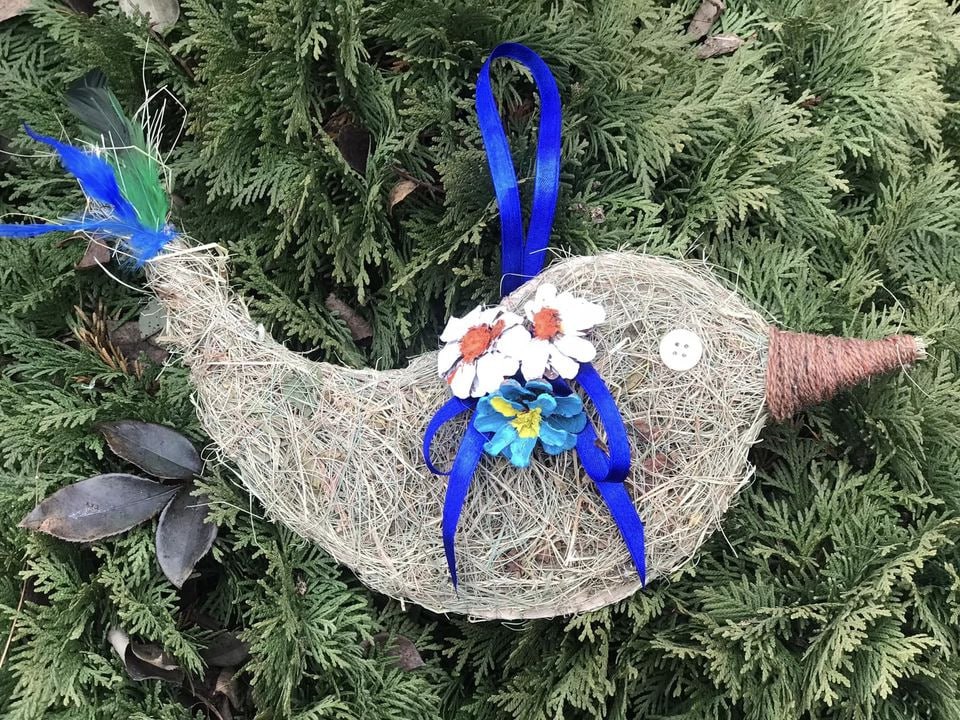 І сама Ольга Дмитрівна, і її вихованці виробляють з природних матеріалів пташки-підвіски, валентинки, зірочки, сердечка, крижинки-сніжинки, повняки, ялинки, коники з кукурудзяного листя, різноманітні прикраси, декоративні віночки, панно з шишок та кори, янголів, трав’яні композиції. Усього не осягнути й не перелічити!