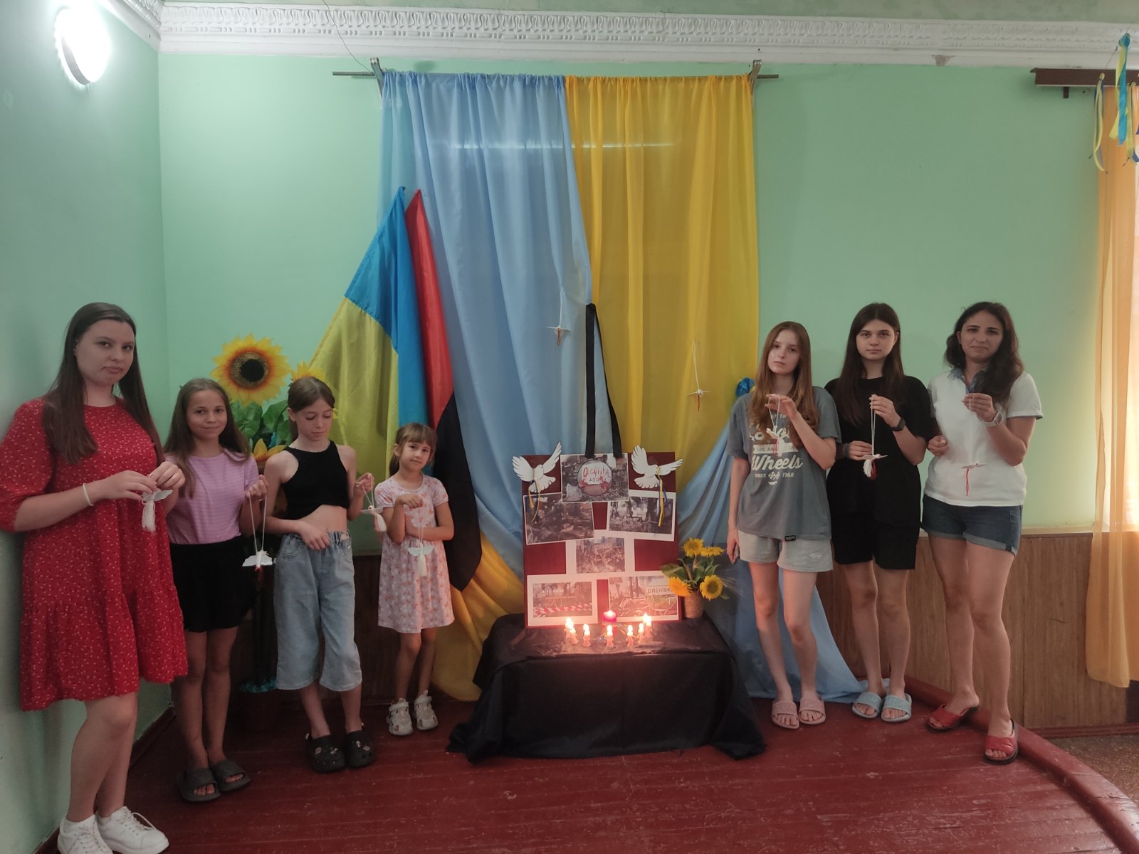 Захід завершився спільною виставкою робіт. Кожен учасник міг побачити своїх журавлів поруч з іншими, створивши загальну композицію, що символізує єдність та надію на краще майбутнє.