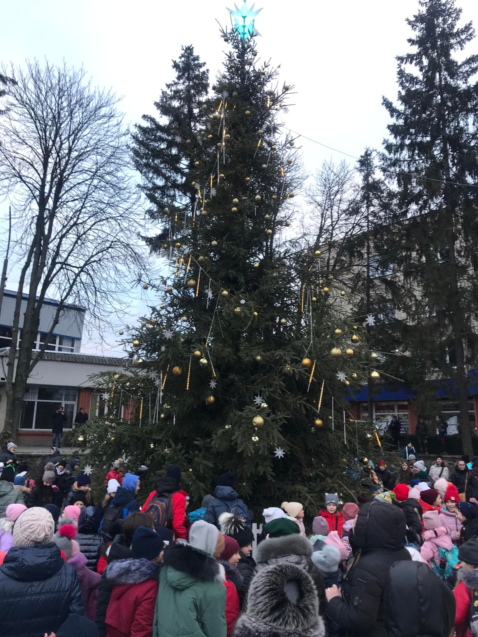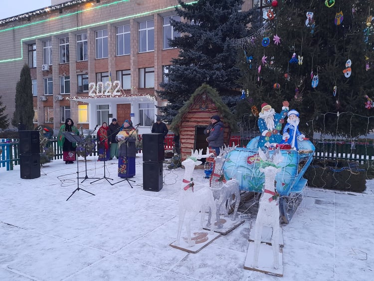 У Катеринопільській громаді «запалили» ялинку 24 грудня. Прикрасили дерево, що росте перед місцевою адміністрацією. Поруч поставили маленьку хатинку, в якій під час концерту сидів баяніст. Тут же – сани з оленями, Дідом Морозом та Снігуркою. Адмінприміщення, ялинку й прилеглу зону щедро прикрасили новорічними гірляндами. Над входом в адмінприміщення розмістили напис «2022».