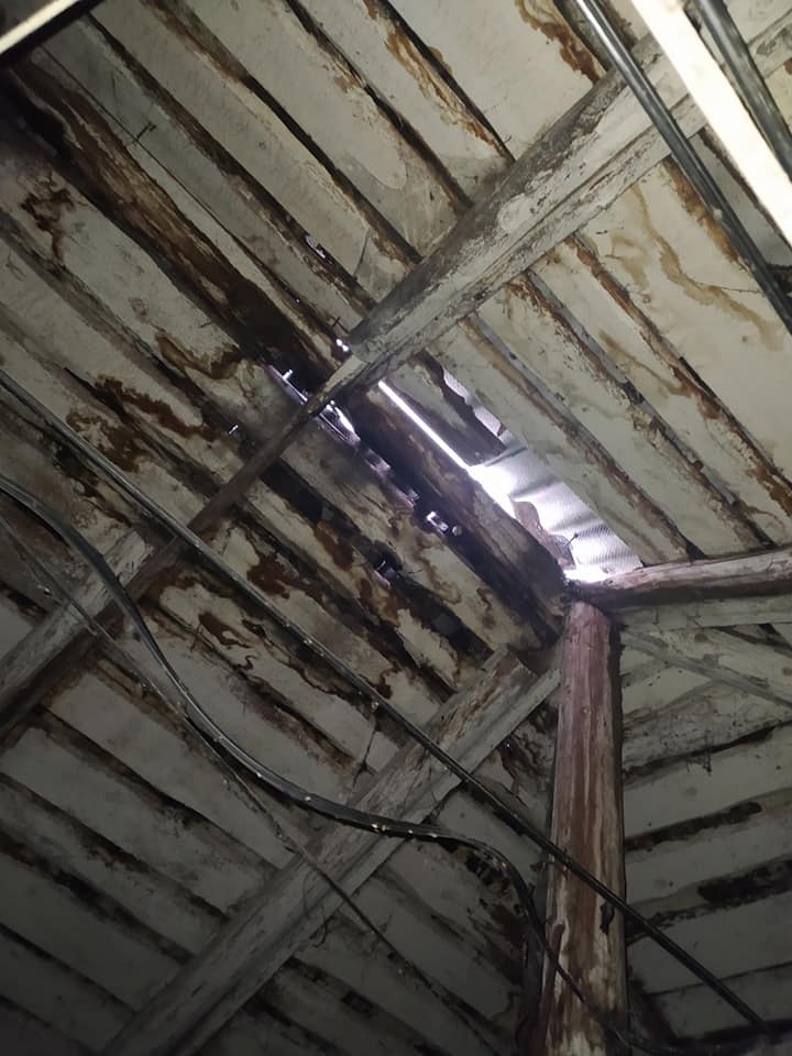 –Ми купили квартиру 9 років тому, – розповідає Валентина Мартиненко. – З 14-го року я почала активно писати в УЖКГ. Вже тоді були тріщини у фундаменті, дах без кінця протікав. 8 із 16-ти квартир розташовані на 2-ому поверсі. І у всіх них тече стеля. Ми підстелили плівку, тому в нас менше проблем. Всі інші страждають: шпалери відпадають, все мокре. На даху повністю гниле дерево, а в шифері дірки. Перекриття, як решето. Щоразу, коли йде дощ, ми переживаємо, чи той дах не звалиться на нас.