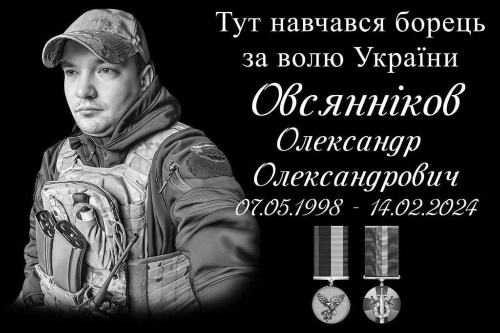 У Звенигородському ліцеї №2 на Черкащині до Дня Захисників Вітчизни відкрили меморіальну дошку на спогад про колишнього вихованця, полеглого воїна Олександра Олександровича Овсяннікова.