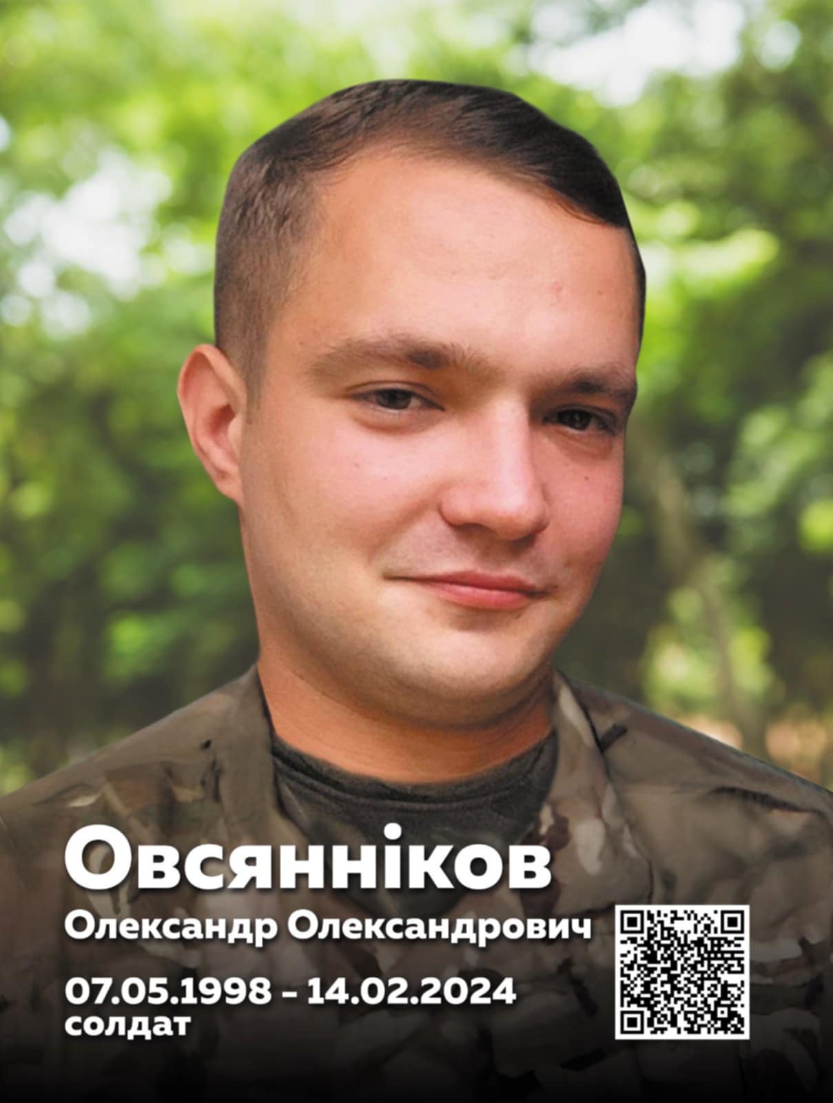 «Війна для Олександра Овсяннікова розпочалася задовго до повномасштабного вторгнення, – розповідають у Звенигородській міськраді. – Ще у 19-річному віці, ледве закінчивши навчання у професійному ліцеї, куди вступив одразу після здобуття шкільної освіти, юнак пішов воювати на схід України. Здобув бойового досвіду та потім, будуючи свою сім’ю й турбуючись про затишок і достаток для рідних і коханих людей, демобілізувався. Тривалий час працював у Польщі. Та потім, коли ворог прийшов з новою, ще страшнішою загрозою, у 2022 році повернувся до України. Пішов добровольцем. Служив кулеметником стрілецького відділення».