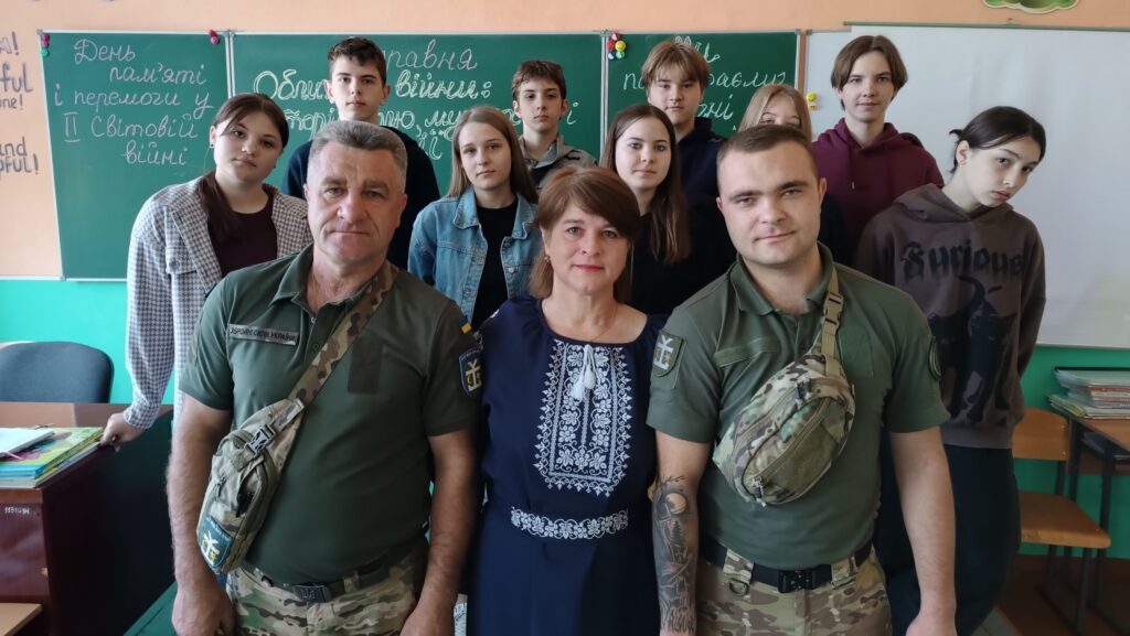 У В’язівському ЗЗСО Вільшанської громади до Дня пам’яті та перемоги у Другій світовій війні відбувся тематичний урок «Обличчя війни: історії болю, мужності і надії», на який люб’язно завітали гості – Борис та Андрій Шевчуки, батько і син, які, як і наші діди та прадіди понад 80 років тому, воюють пліч-о-пліч, захищаючи українські кордони.